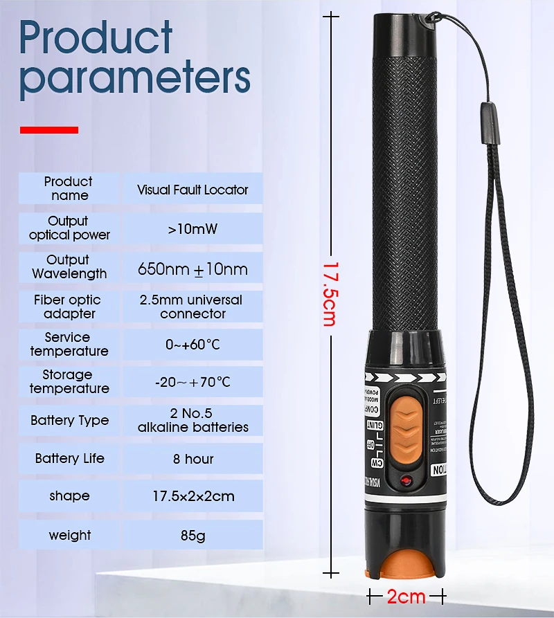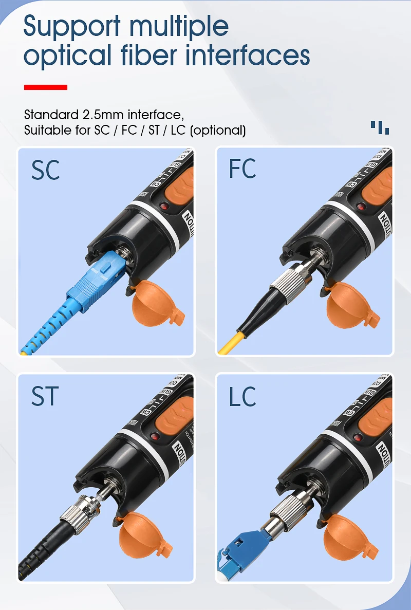 Localizador Visual de fallos FTTH, 10mW, pluma probadora de Cable de fibra óptica de alta calidad, interfaz SC/FC/ST de 2,5mm, herramienta de prueba de fibra óptica VFL