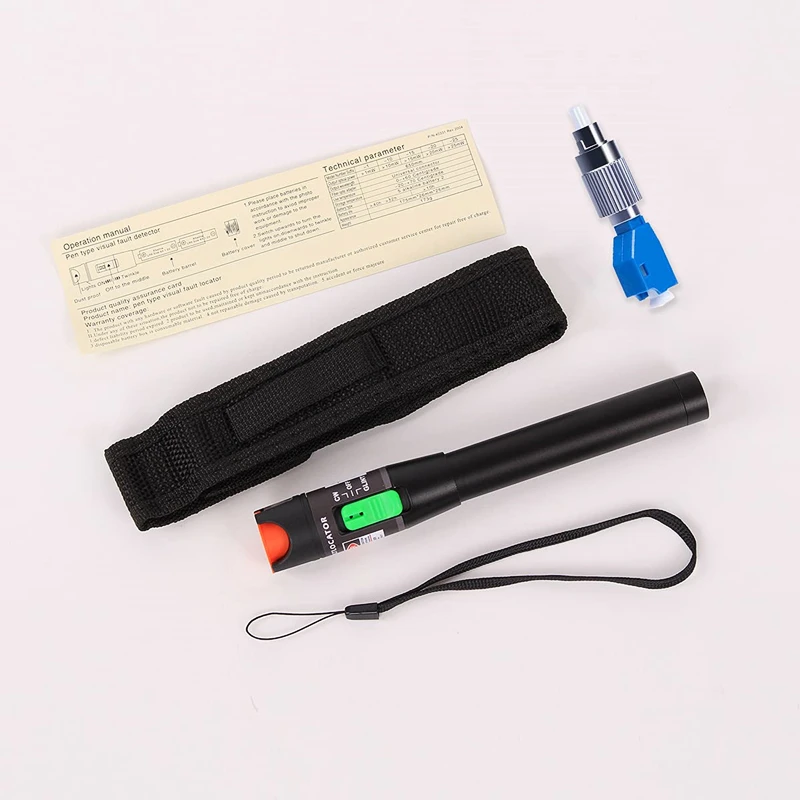 5. Diseño práctico: tamaño pequeño y liviano, el diseño tipo bolígrafo con bolsa lo hace portátil, fácil de verificar fallas de fibra con un localizador visual de fallas, diseño con un cabezal de acero inoxidable y cuerpo de aluminio para evitar choques y polvo, el diseño del fondo de la caja evita daños por ESD de manera eficiente