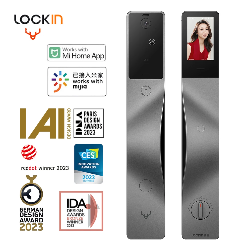Comprar Lockin-cerradura inteligente 3D con reconocimiento facial, dispositivo de bloqueo con huella dactilar, Wifi, automatización electrónica, aplicación de ojo de gato, compatible con Mi Home Mijia