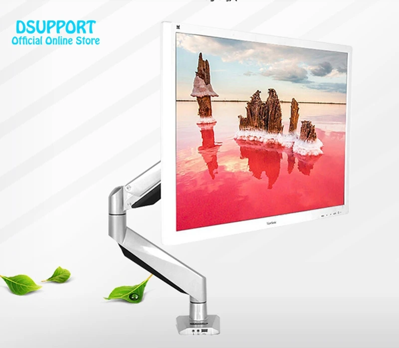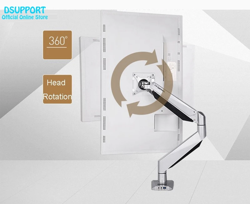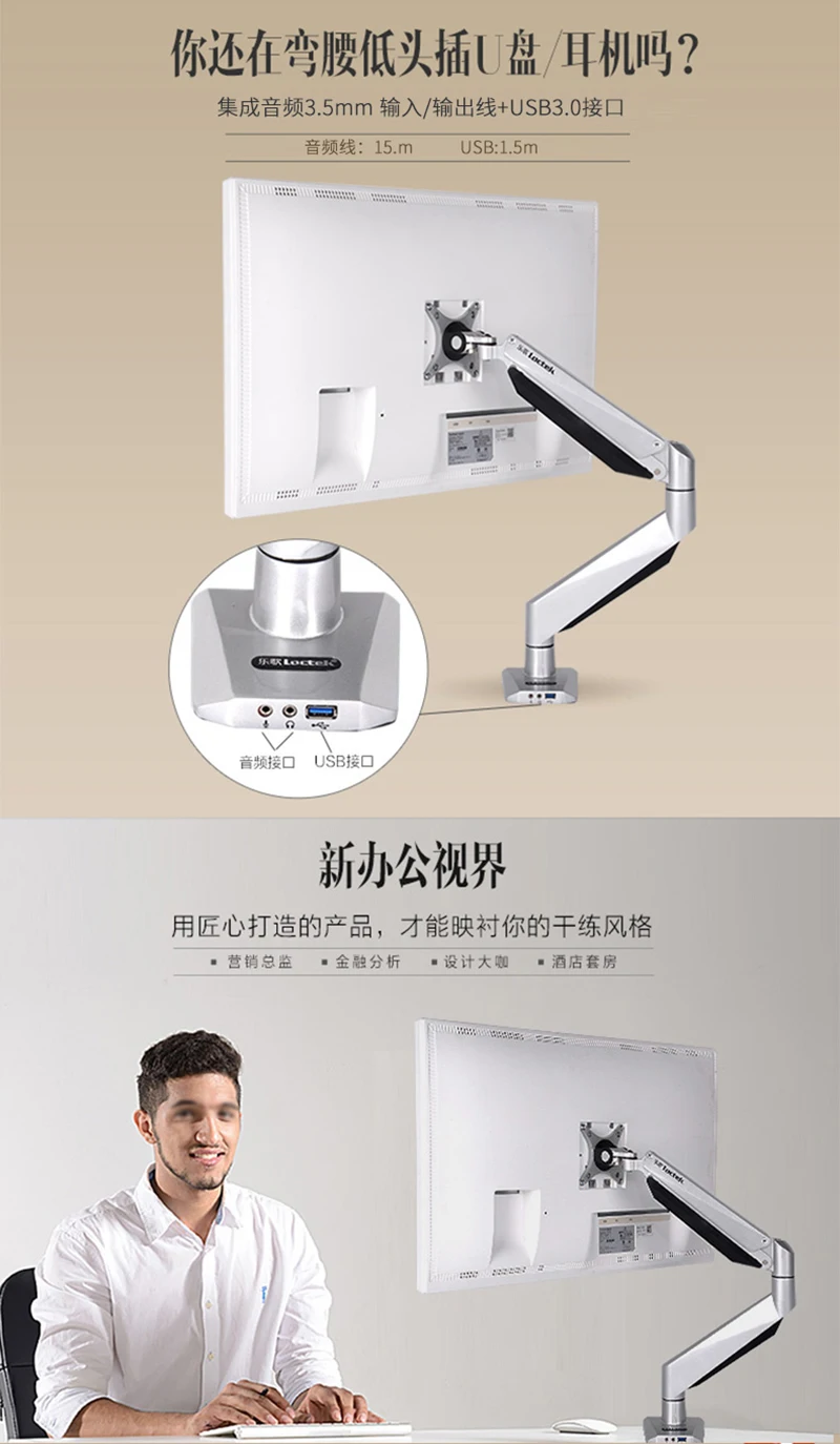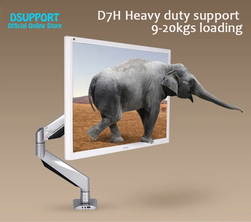 Soporte para Monitor de escritorio de movimiento completo con resorte de Gas de aleación de aluminio de gran calidad D7H que carga 9-20kgs con puerto de Audio y USB