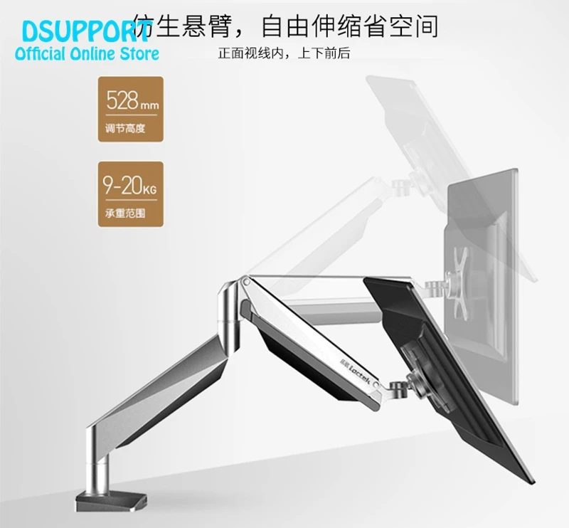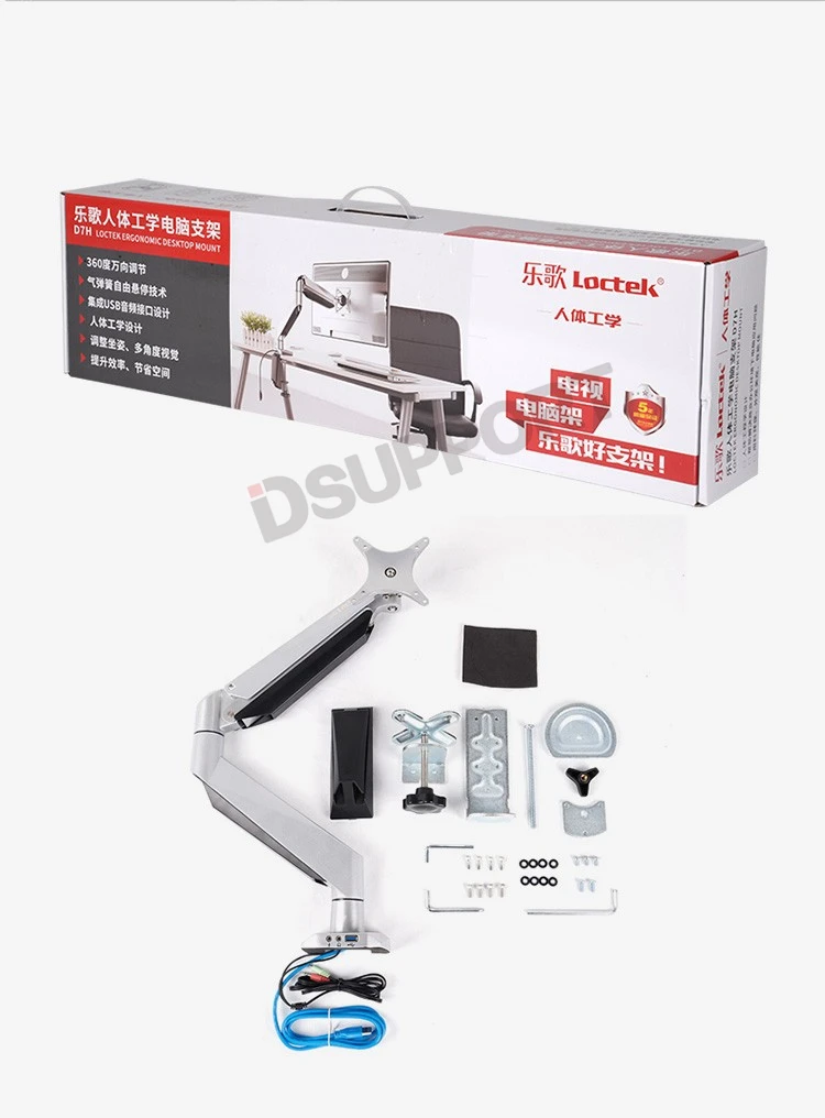 Comprar Loctek-Soporte de Monitor de escritorio D7H, resorte de Gas de aluminio, movimiento completo, montaje de PC todo en uno, Loading9-20kgs de brazo con Audio y Puerto USB
