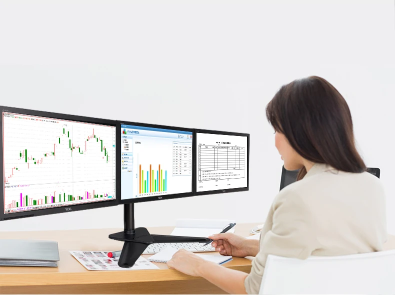 Comprar Loctek-Soporte de pantalla Triple D2T para escritorio, brazo de montaje de elevación sin movimiento completo, 10-30 pulgadas, 10kg cada uno