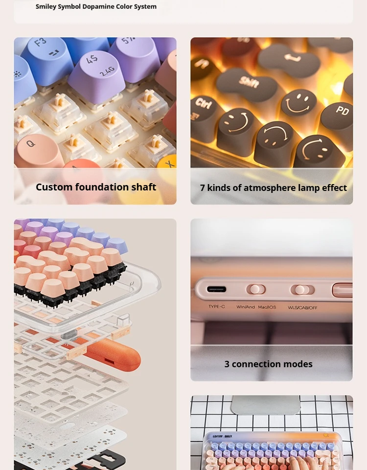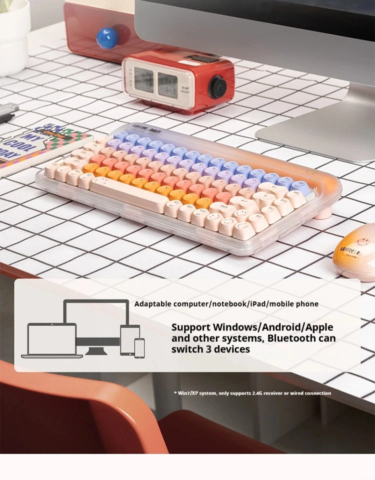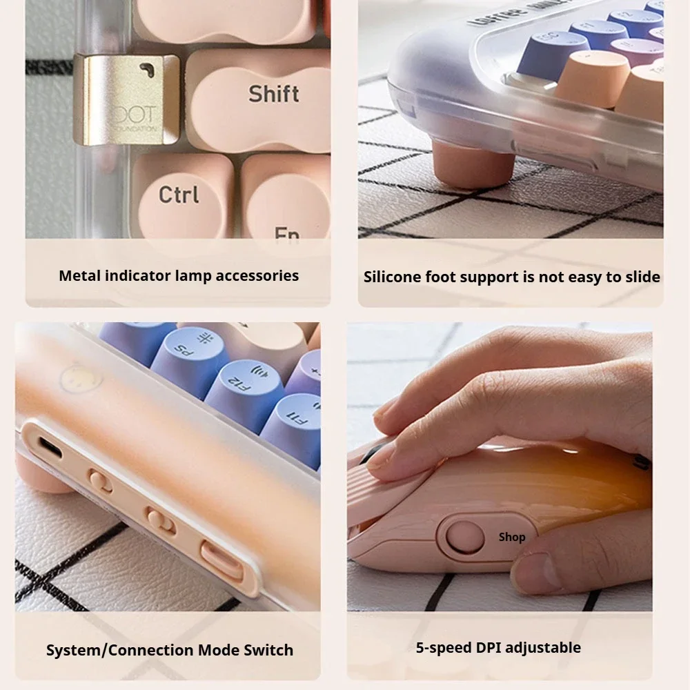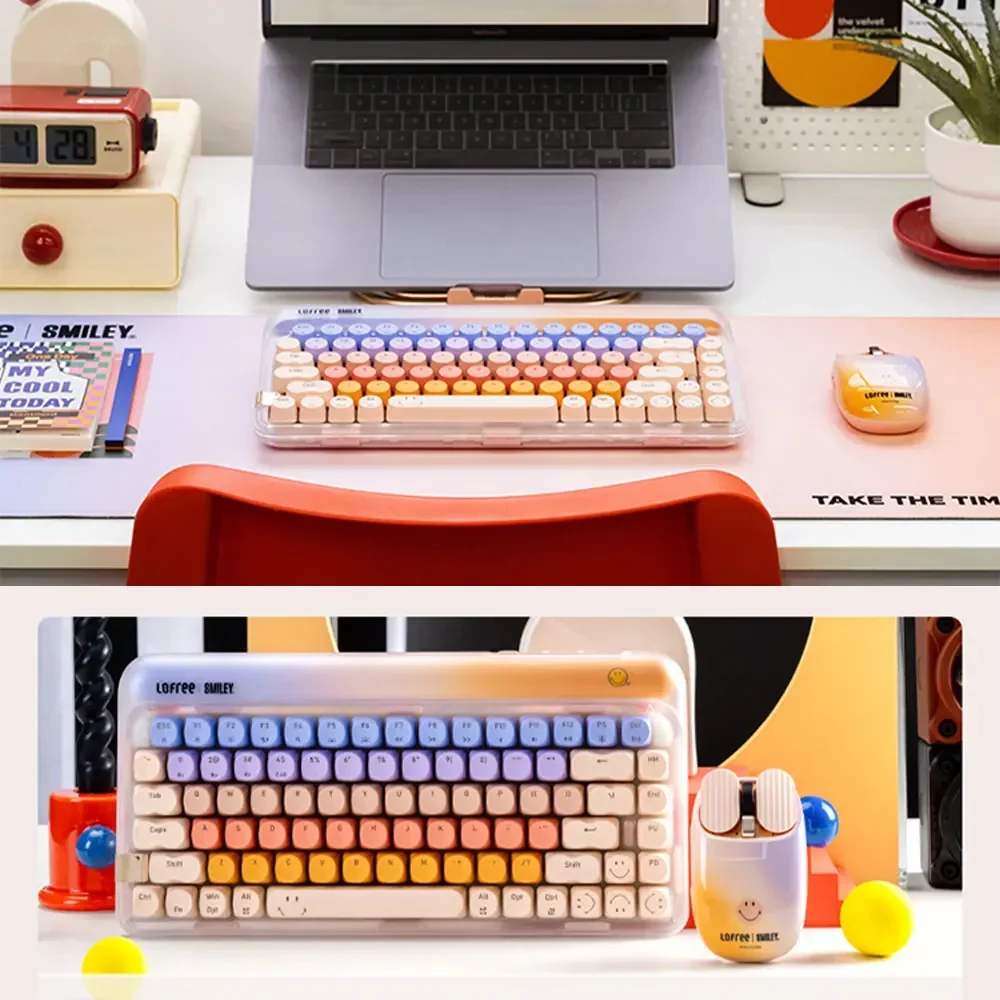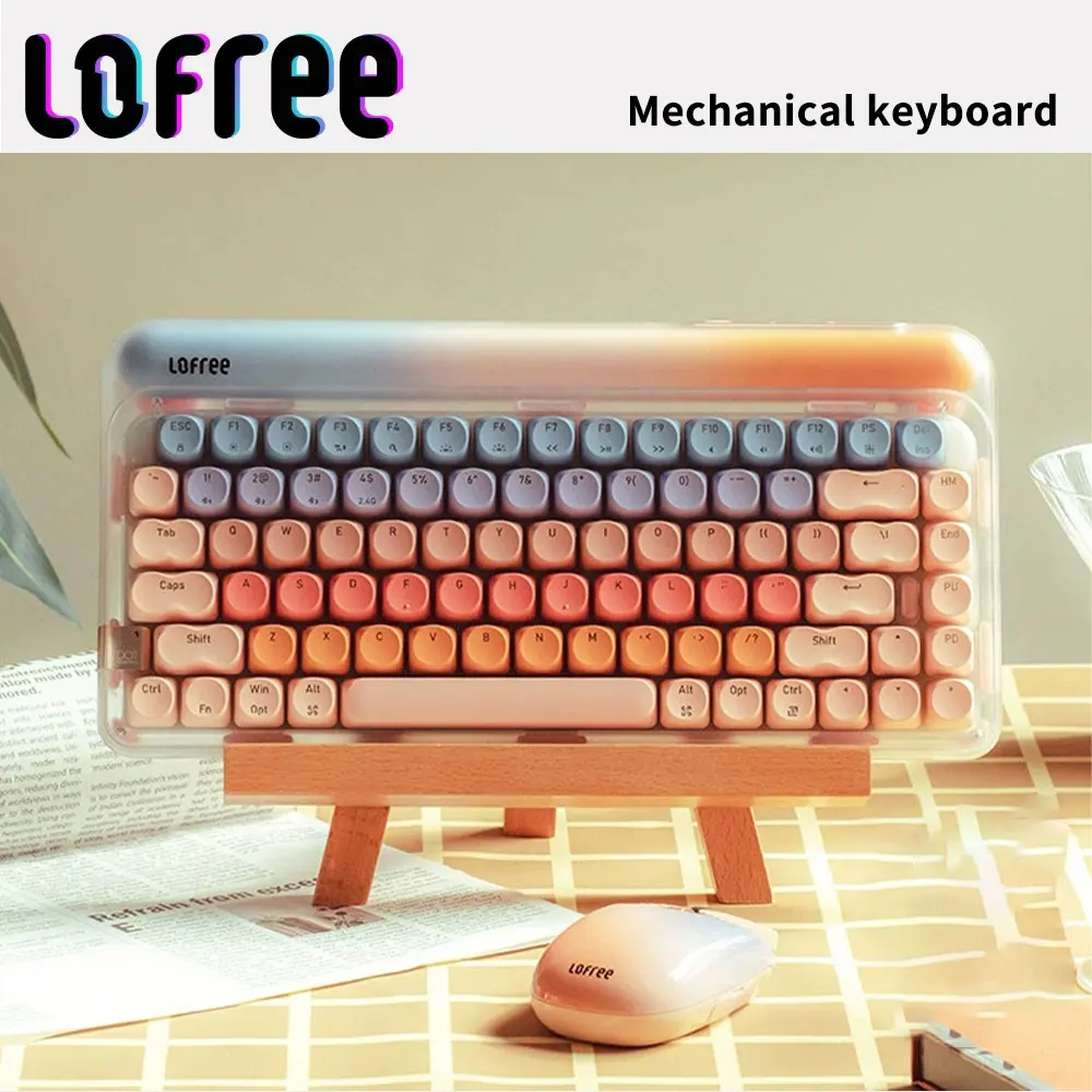 Comprar Lofree-Juego de combinación de teclado y ratón, inalámbrico por Bluetooth, 2,4G, 3 modos, intercambiable en caliente, retroiluminación de 84 teclas para juegos de oficina elegantes