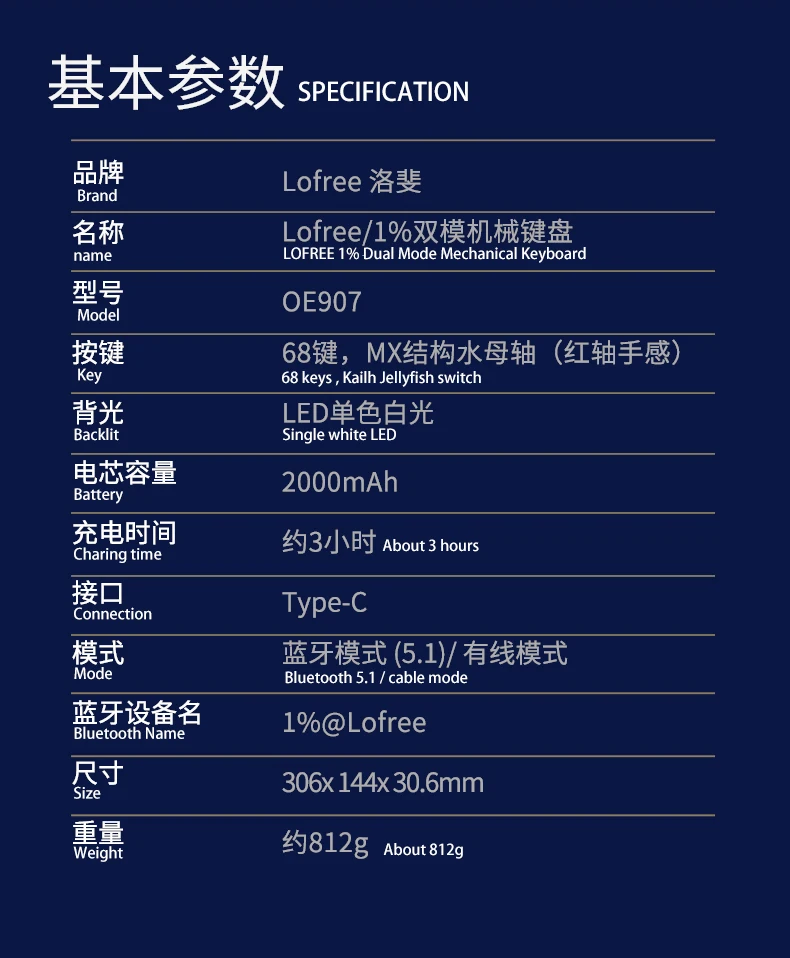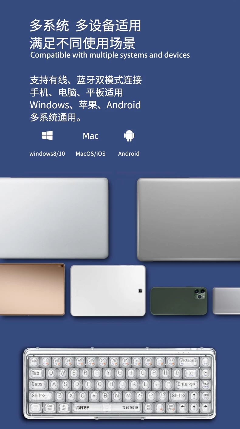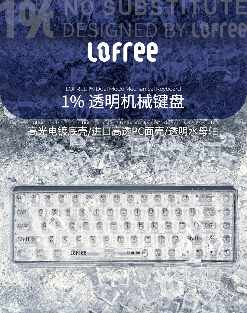 Lofree-Teclado mecánico Kailh 65% 1%, carcasa transparente, modo Dual, Bluetooth, interruptor de Medusa con interruptor led, compatible con efectos de iluminación