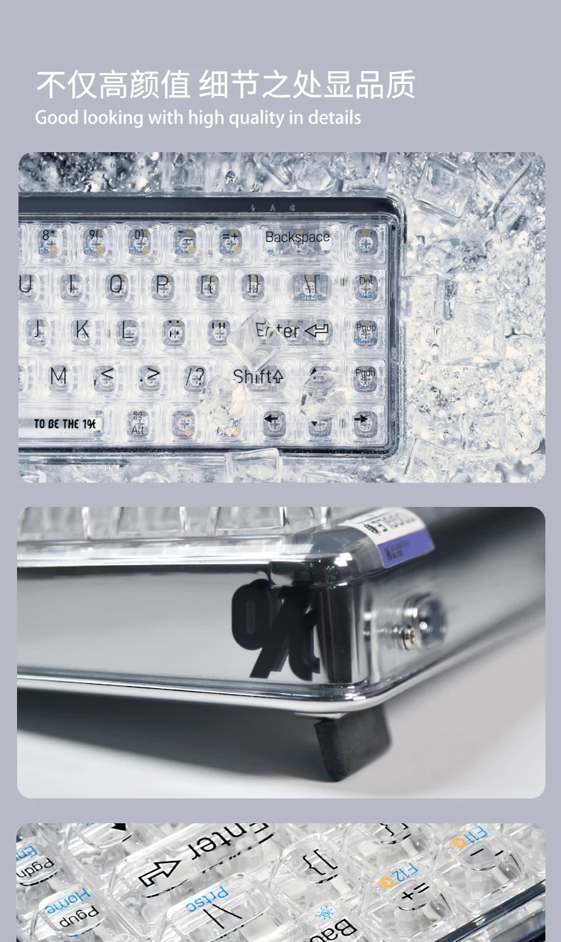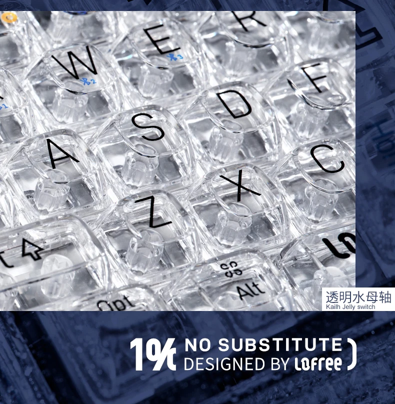 Comprar Lofree-Teclado mecánico Kailh 65% 1%, carcasa transparente, modo Dual, Bluetooth, interruptor de Medusa con interruptor led, compatible con efectos de iluminación