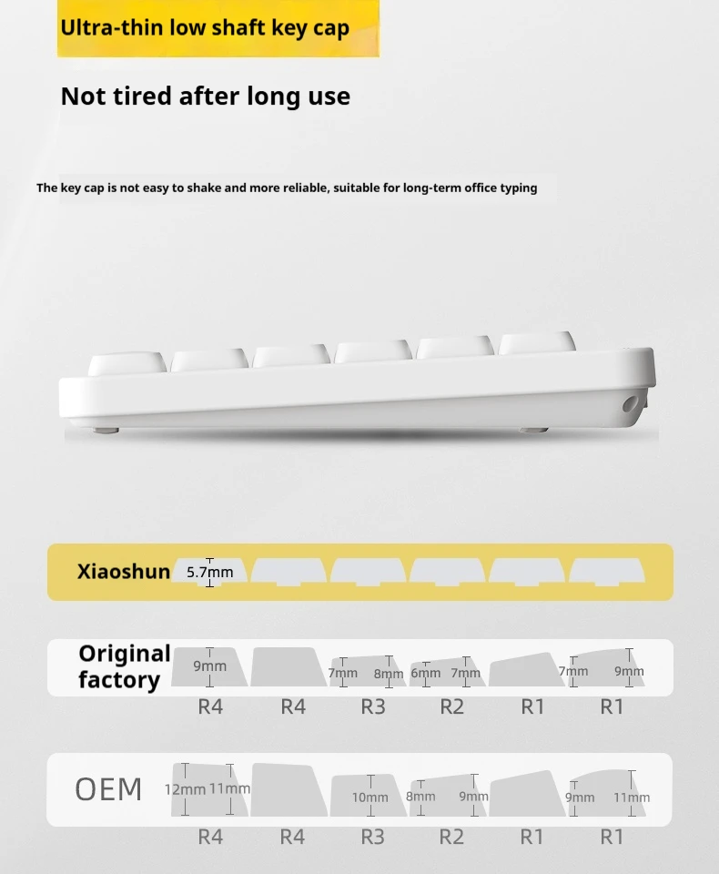 Diseñado exclusivamente para interruptores mecánicos delgados (Cherry MX de perfil bajo, Gateron, etc.), estas teclas optimizan la capacidad de respuesta de corto alcance.Perfecto para juegos de disparo rápido o escritura sin esfuerzo.