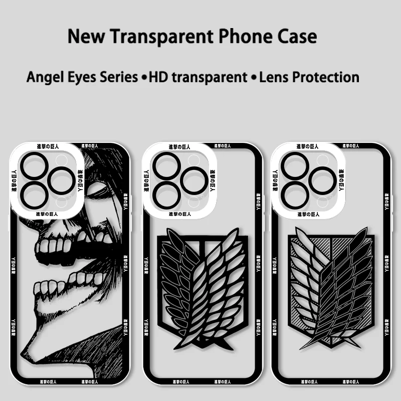 Logotipo de Anime Attack on Titan para Apple iPhone, 15, 14, 13, 12, 11, XS, XR, X Pro MAX, 8, 7 Plus, SE, Ojos de Ángel, funda transparente para teléfono