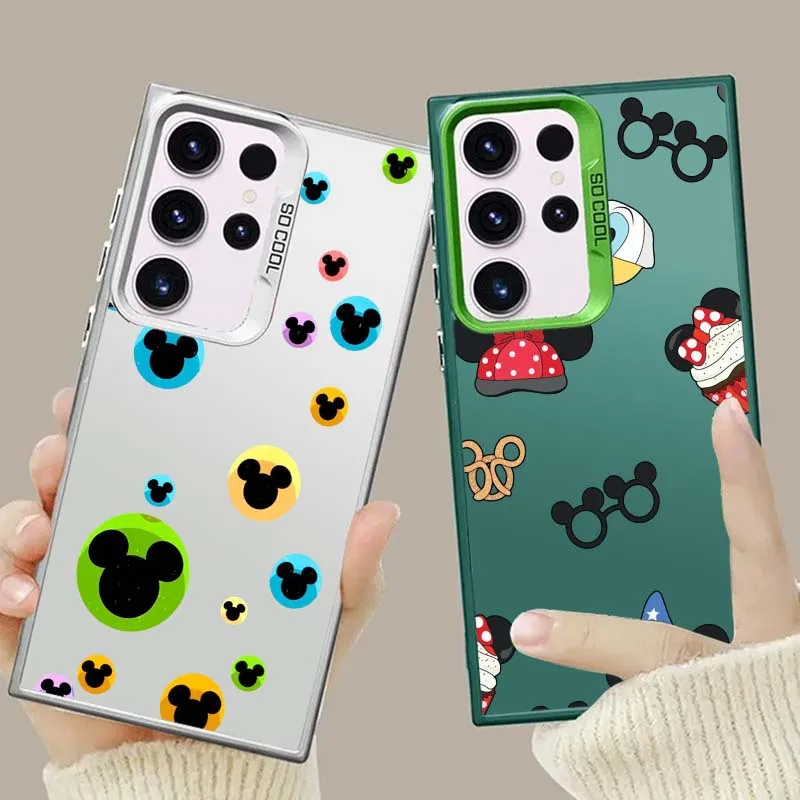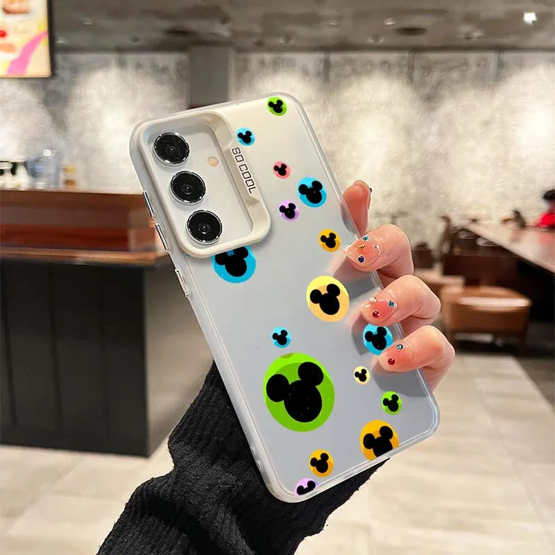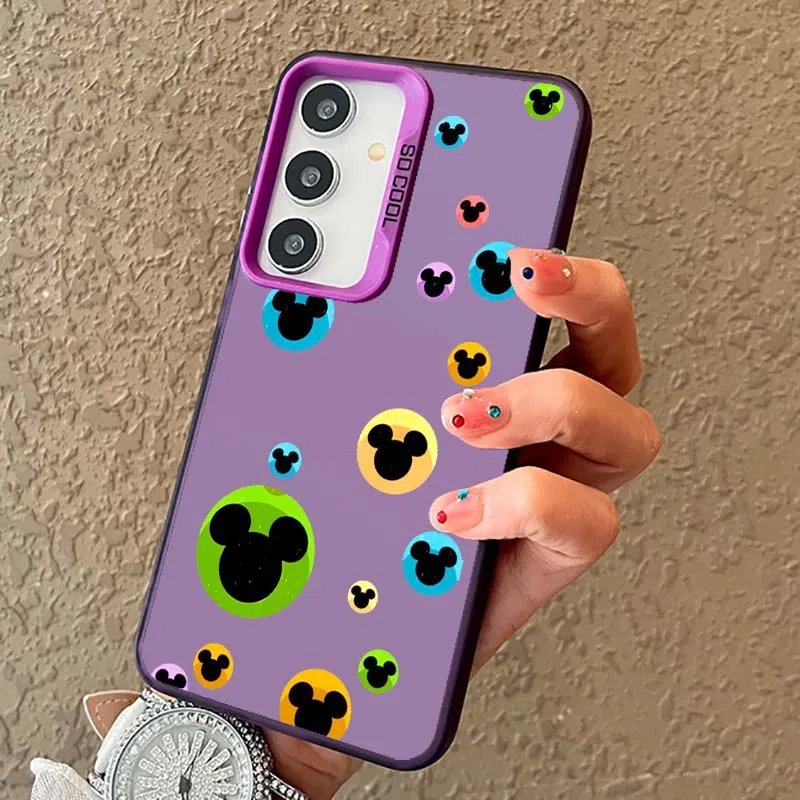 Logotipo de dibujos animados de Mickey de Disney para Samsung A16 A55 A05 A51 A71 A54 A06 A04e A15 A05s A25 A56 A13 A53 funda de teléfono plateada colorida
