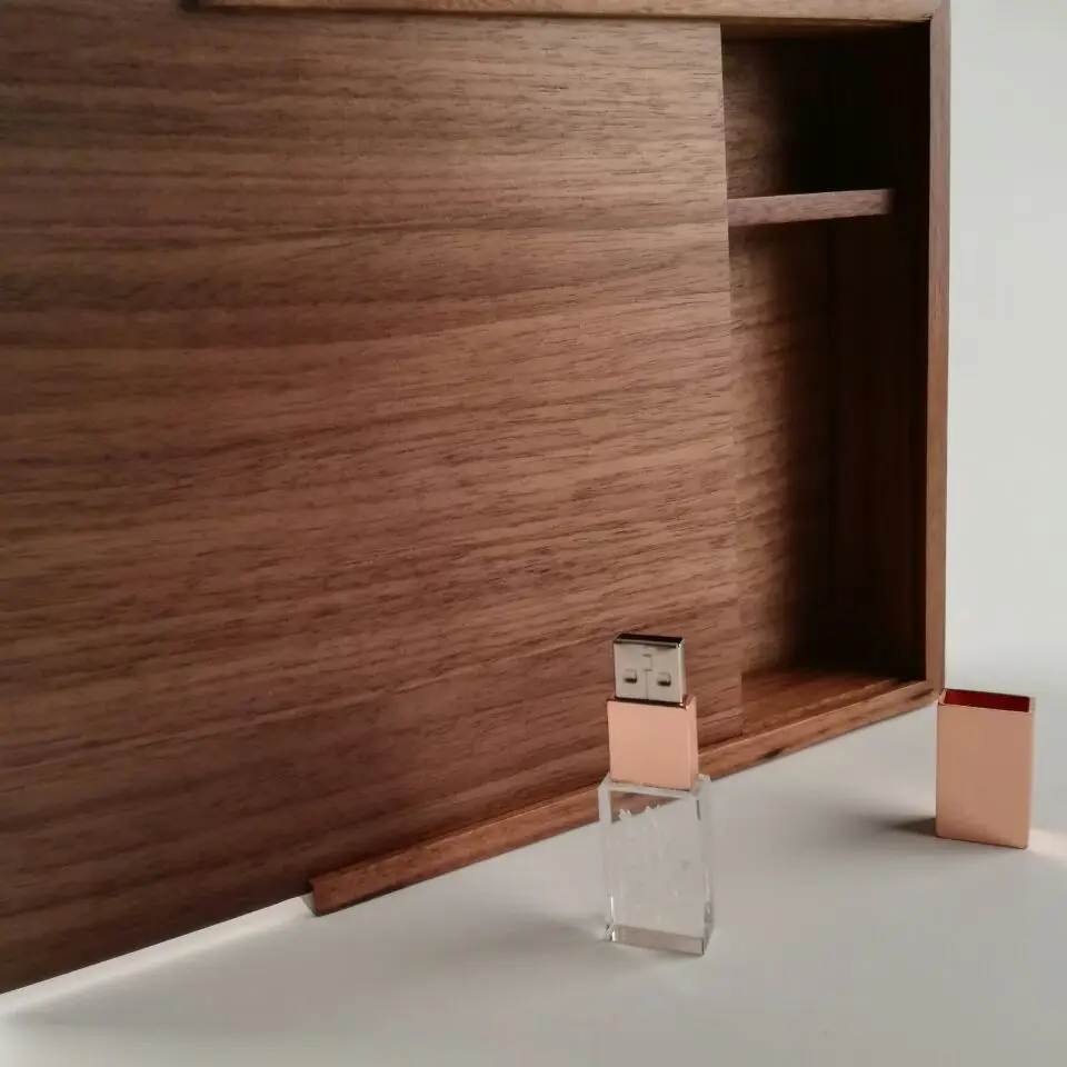 Comprar Logotipo personalizado Usb de cristal de oro rosa con (170x170x35mm), caja de fotos, embalaje usb 2,0, Memoria Flash Pen Drive