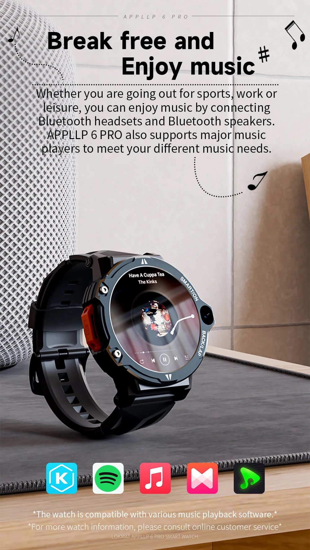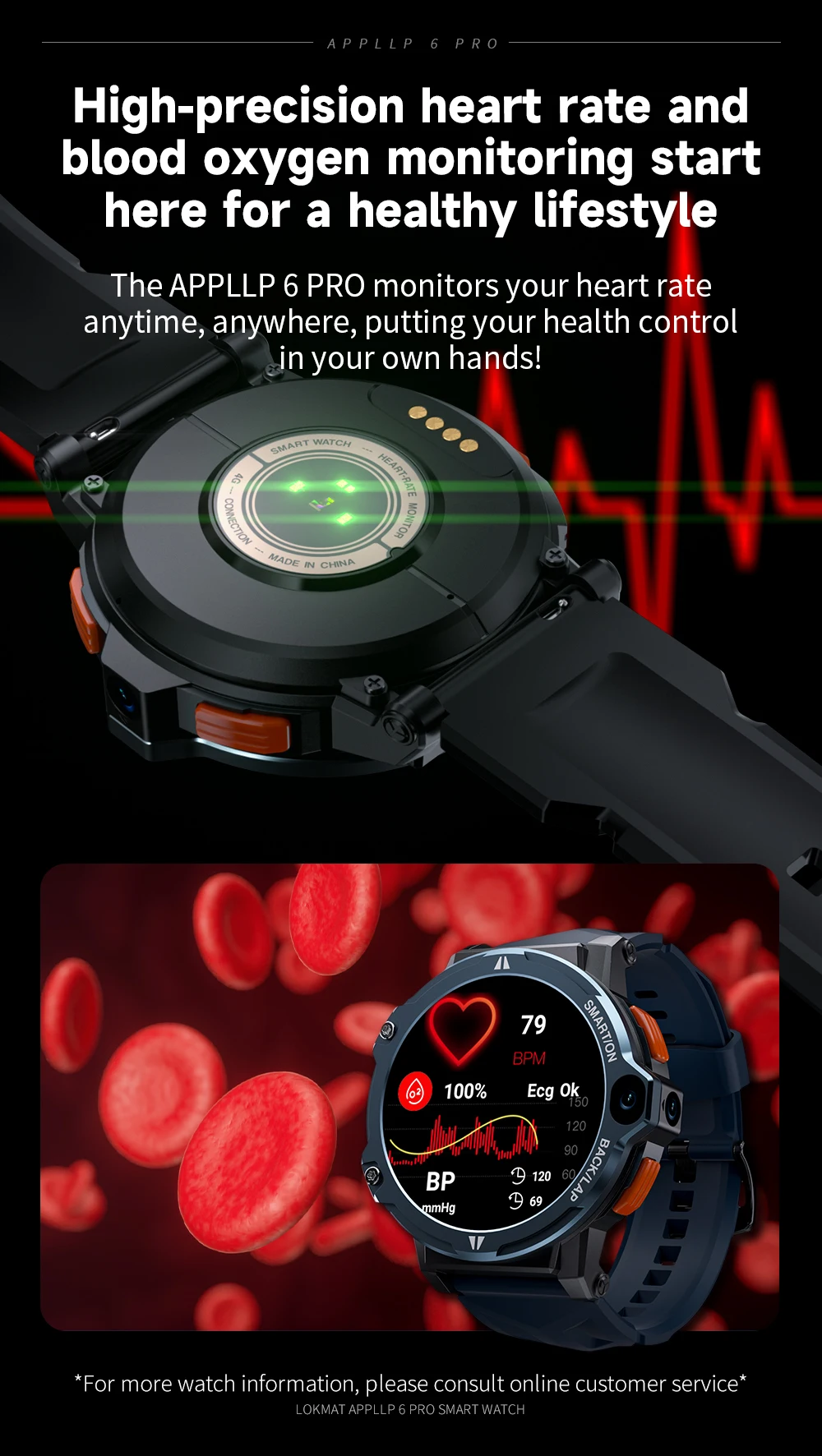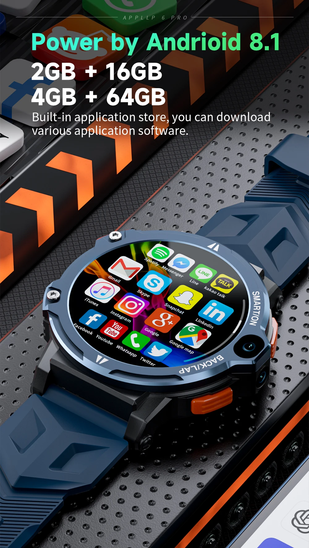 Comprar LOKMAT-reloj inteligente APPLLP 6 PRO, dispositivo con Android, pantalla táctil, cámara Dual, GPS, Wifi, llamadas, Monitor de ritmo cardíaco