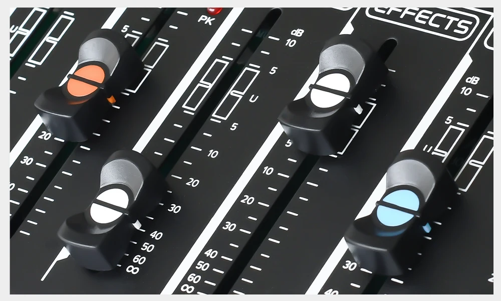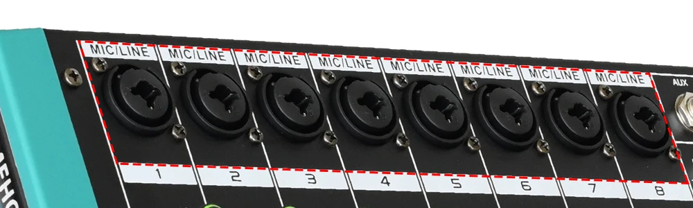 8 canales de entrada de micrófono son enchufes combinados, son adecuados para enchufe XLR y enchufe LINE.