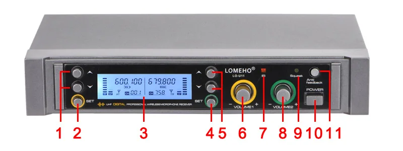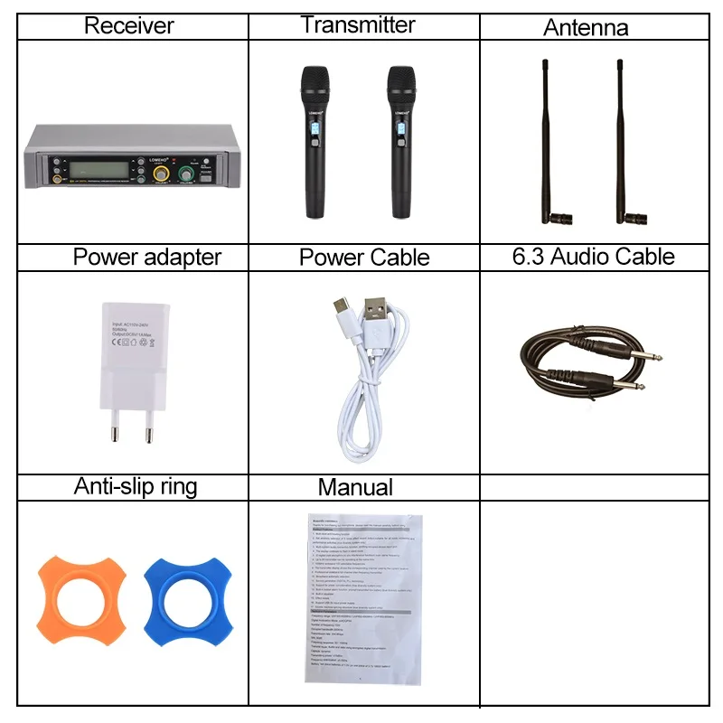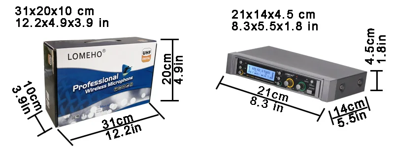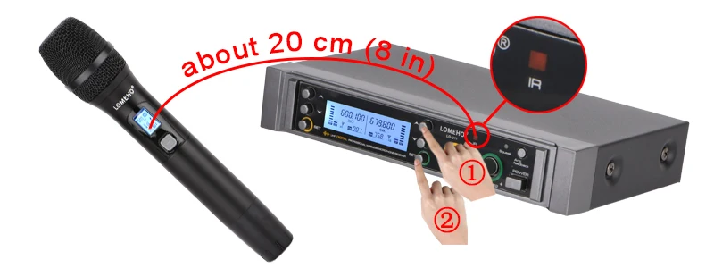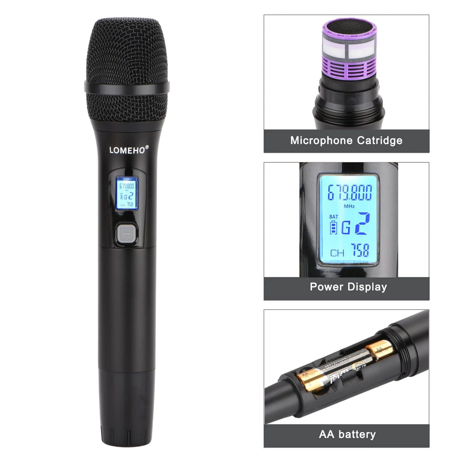 Lomeho Sistema de micrófono inalámbrico de 2 canales Micrófono de karaoke de frecuencia UHF ajustable de mano profesional Muestra de iglesia en escenario dinámico 500 + MHz Rendimiento del botón silencioso LO-U11
