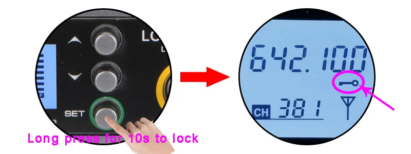 Mantenga presionado "SET" durante 10 segundos, la frecuencia se bloqueará.