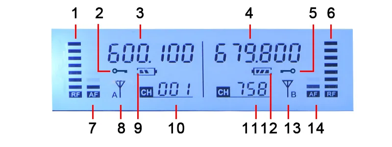 1.Frecuencia ajustable UHF de 2*450 canales: