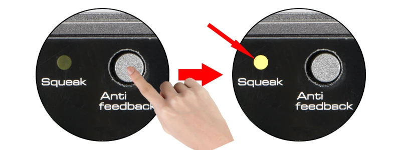 Presione el botón "Anti-feedback", la luz "Squeak" se encenderá.