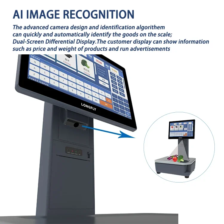 Añadir: Muxi Industry Area, Wujiang dist, Shaoguan,Guangdong, ChinaComprar LongFly-Código de Barras digital con pantalla táctil, 15,6, etiqueta AI, supermercado, pos, android con escala, caja registradora, báscula ai