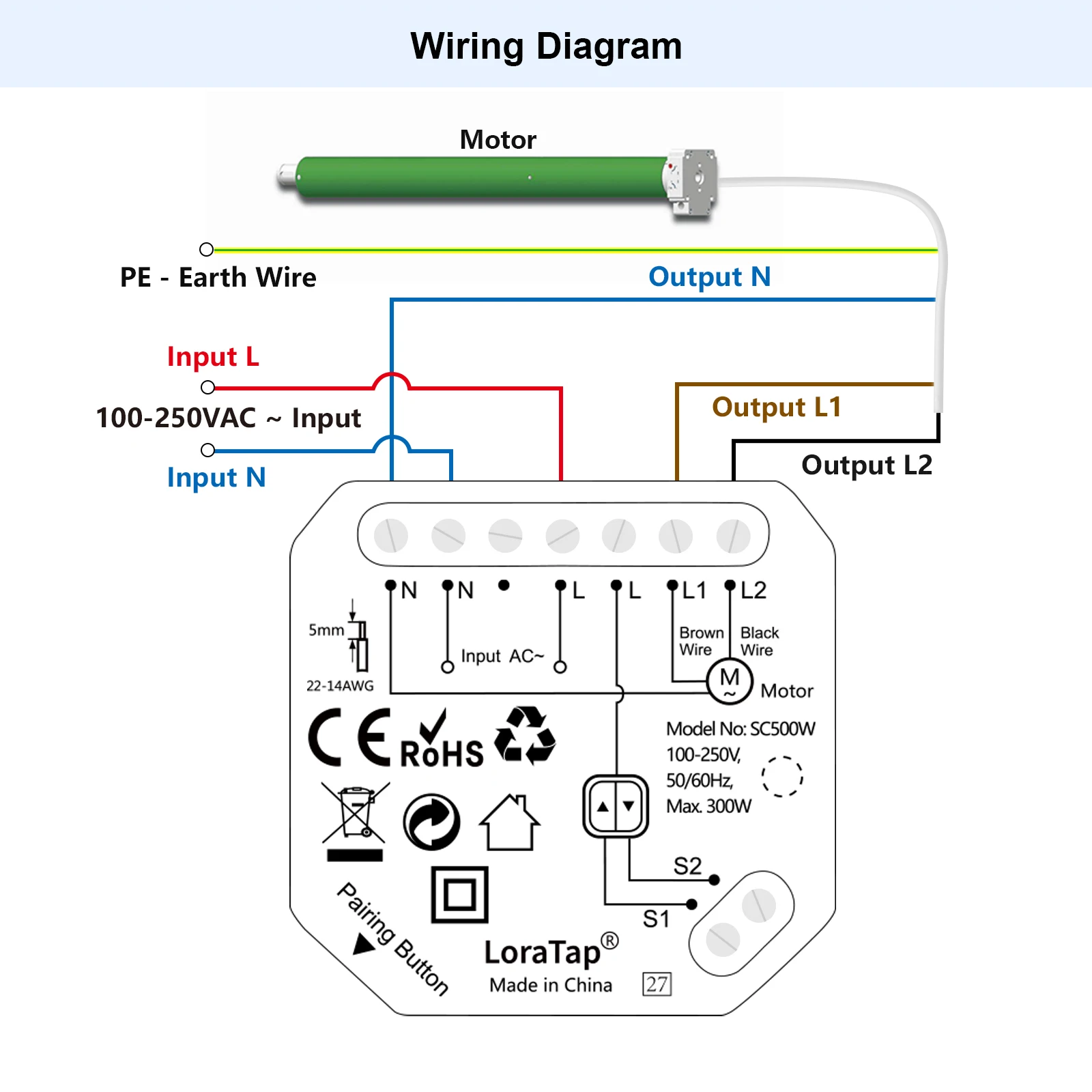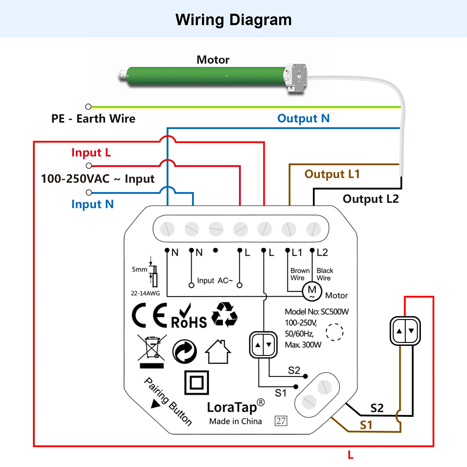 - Input Voltage: 100~250VAC, 50/60Hz;Output Voltage(Motor Voltage): 100~250VAC, 50/60Hz(Our switch can't work with DC motor!)