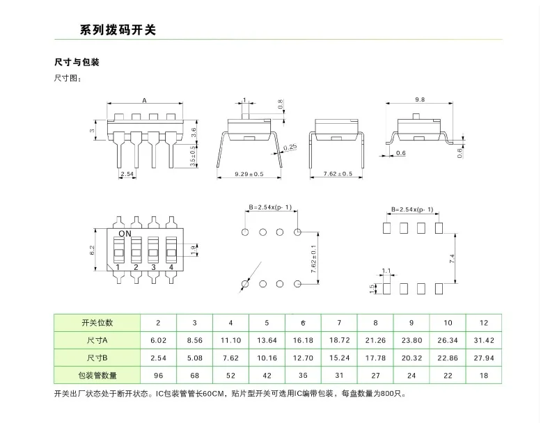 10 unids/lote 2,54 interruptor DIP de parche chapado en oro Pin 2/3/4/5/6/8P/10 2,54 MM SMD