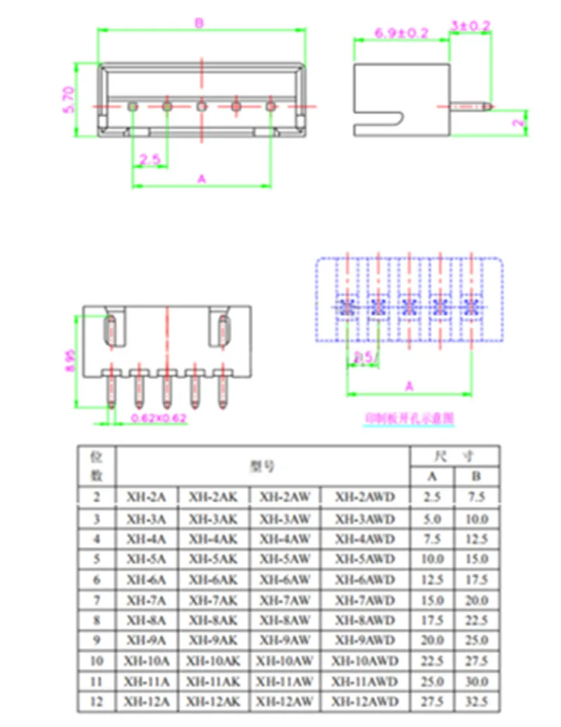 20 unids/lote de carcasa de goma de color rojo, negro, amarillo, verde, azul, XH, 2,54mm