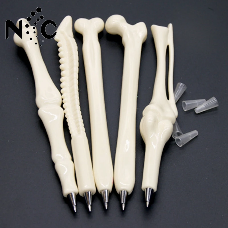 Lote de bolígrafos con forma de hueso, recambio de tinta de 0,7mm, bolígrafos de escritura, papelería escolar y de oficina, suministros de regalo, novedad, 5 unidades