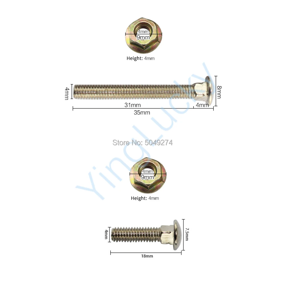 100PCS/Lot 35*4mm coin acceptor screw+nut fixing screw mounting coin acceptor parts for coin-operated games arcade game machine