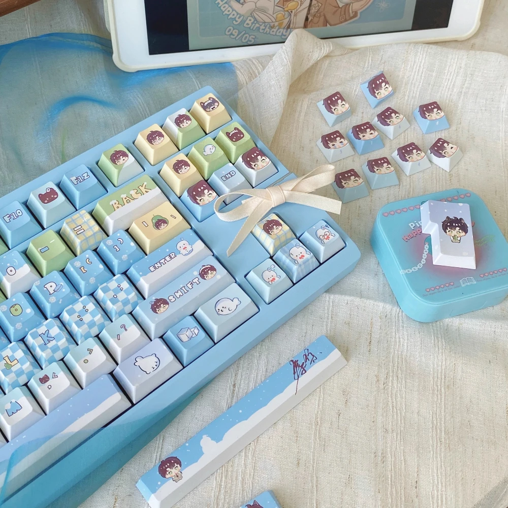 Love and Deepspace Zayne Keycaps EOA/Cherry perfil PBT sublimación de calor azul dibujos animados lindo juego Keycap para teclado mecánico