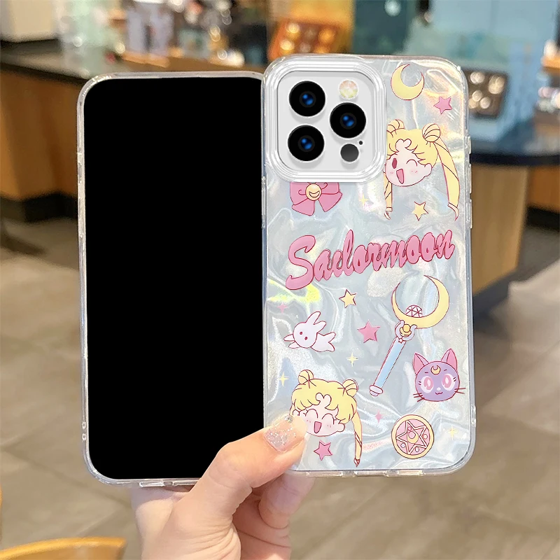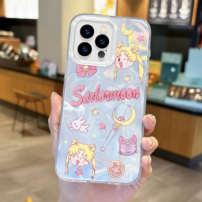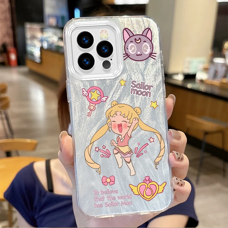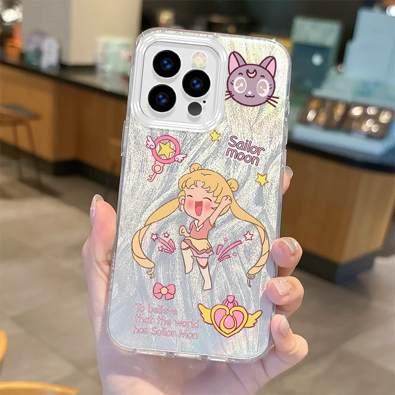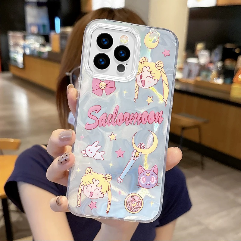 Lovely Sailors Moons Anime Gradient Phone Case para iPhone 16 15 14 13 12 11 8 7 6 Pro Max Plus XS XR Hard Shockproof Back Covers