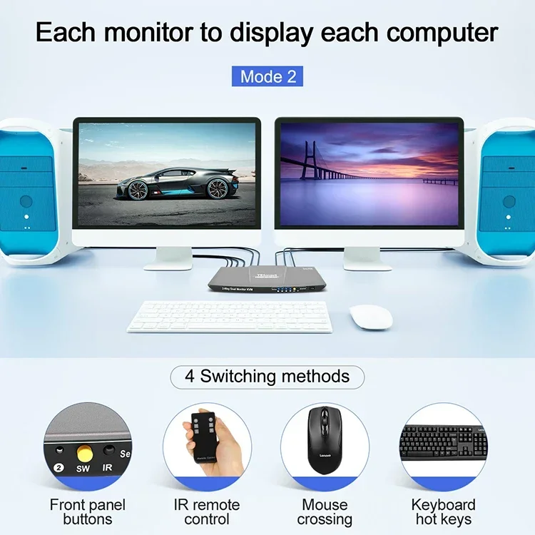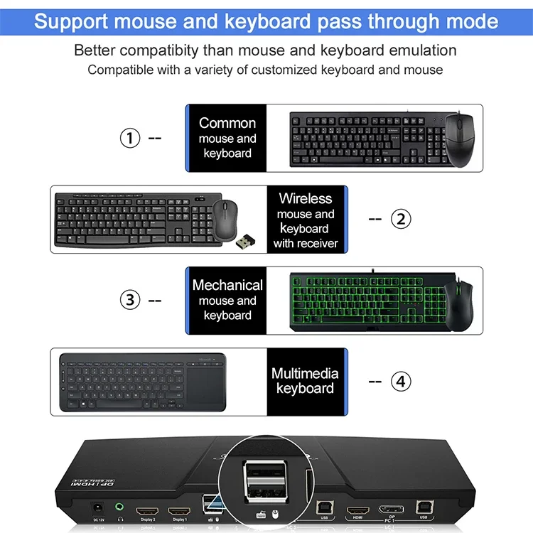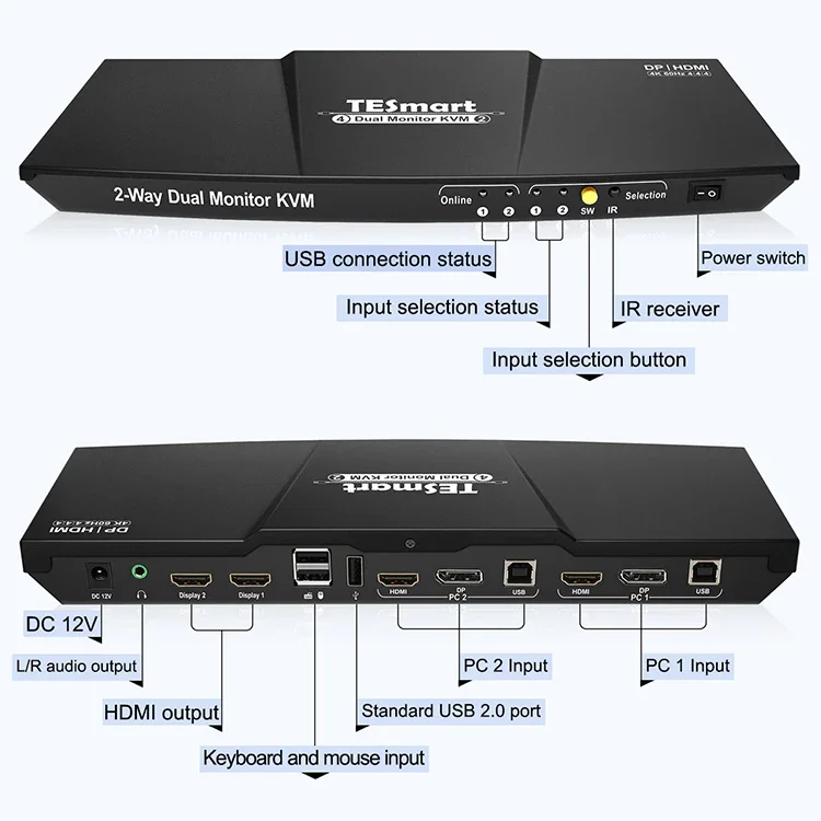 Conmutador KVM de doble monitor 4x2 HDMI + DP