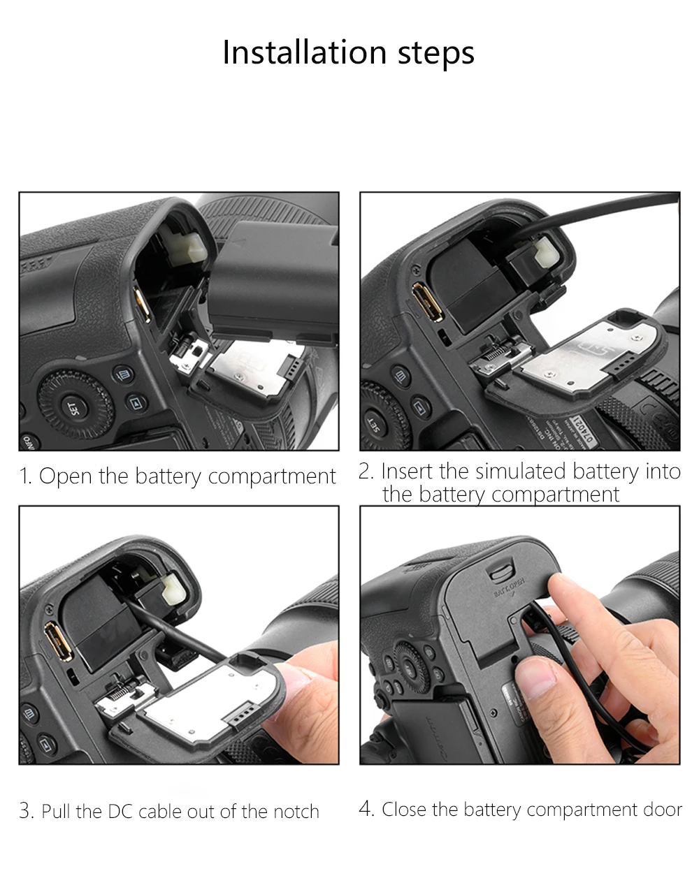 LP-E6 LP-E6NH DR-E6 Conector de fuente de alimentación acoplador D-TAP/DC de batería simulada