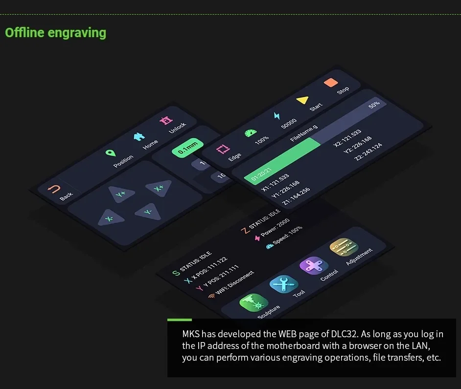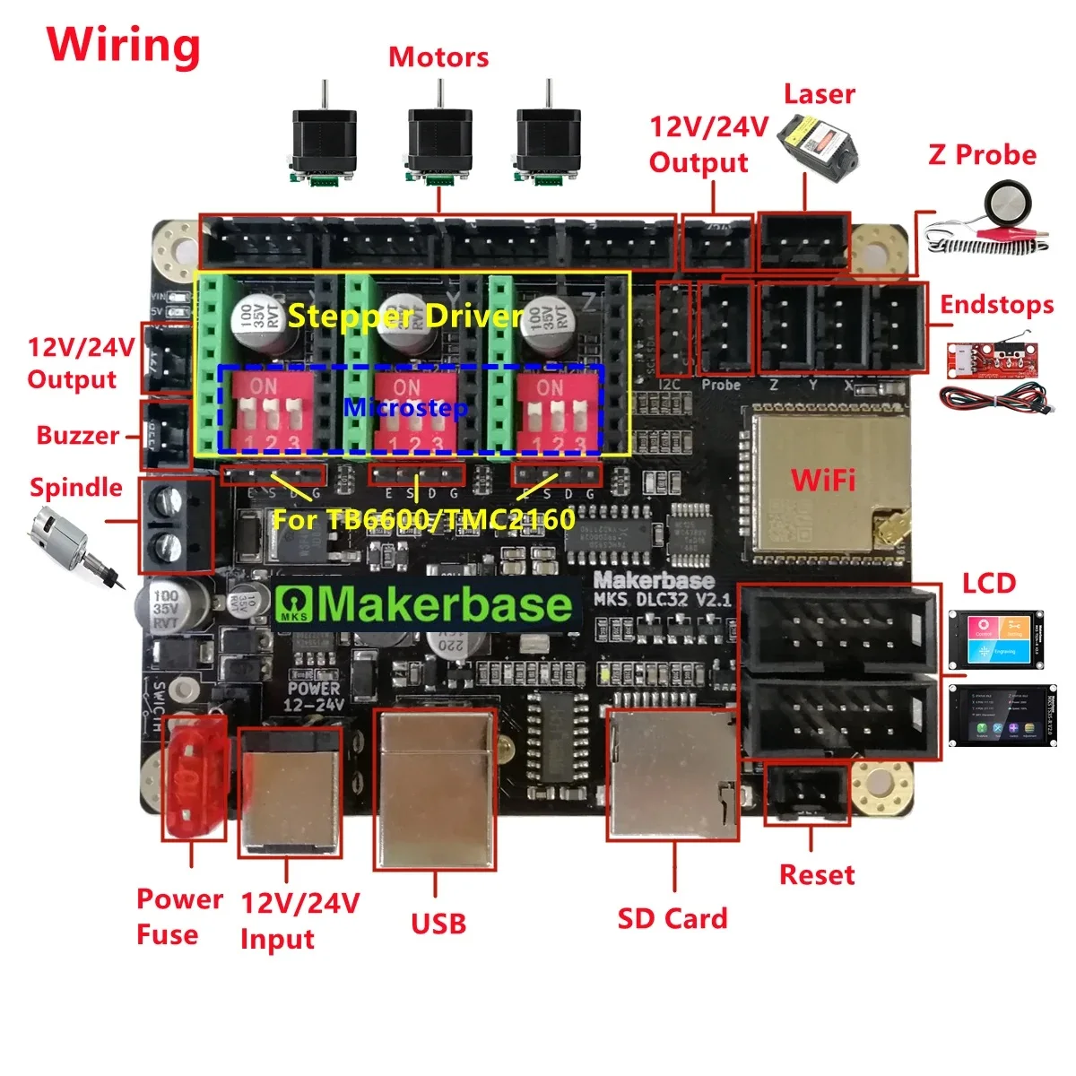 Ls-makerbase-placa base MKS DLC32 V2.1, controlador sin conexión de 32bits, WIFI, pantalla táctil TFT, TS24/TS35-R, para máquina de grabado láser