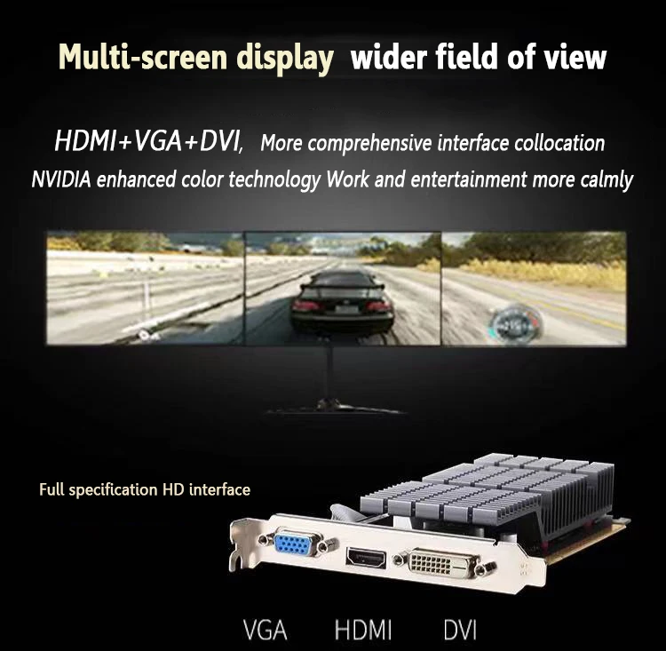 ¡Excelente tarjeta gráfica para un ordenador fijo con Windows 7 de 64 bits! Sin ruido de ventilación. Necesitas descargar el controlador NVIDIA GT710 de 403 MB (391.35-desktop... .exe), instalarlo, reiniciar, y la tarjeta gráfica funcionará a plena capacidad, en Muy Alta Definición 1.920x1.080, aliviando el microprocesador de la placa base, acelerando así indirectamente todo el ordenador.