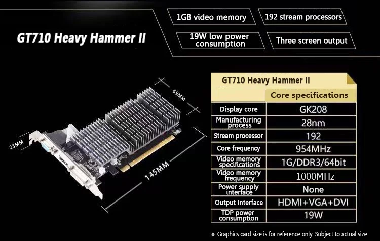 LS NVIDIA GeForce GT710 Martillo pesado 1G DDR3 HDMI/DVI/VGA Tarjeta gráfica discreta PCI-E de nivel básico para computadoras de escritorio