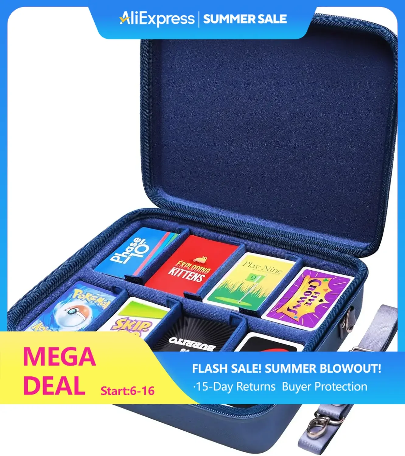 【Ajuste perfecto】: Diseñamos especialmente el estuche para que se ajuste a su tarjeta de juego, puede contener más de 2500 y más, compatible con varias tarjetas de juego como SKYJO/UNO/Taco Cat Goat Cheese Pizza. DIMENSIONES EXTERIORES: 11,5" L - 9,1" W - 3,5" H.