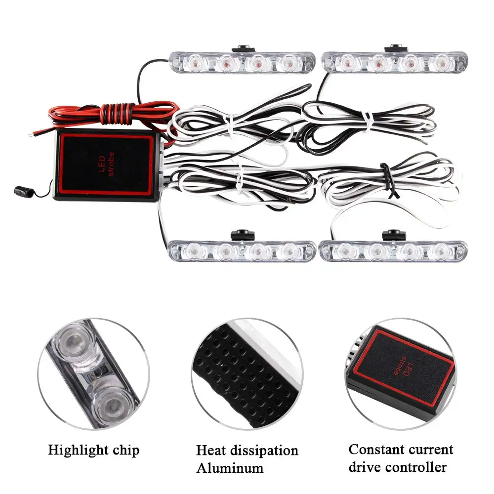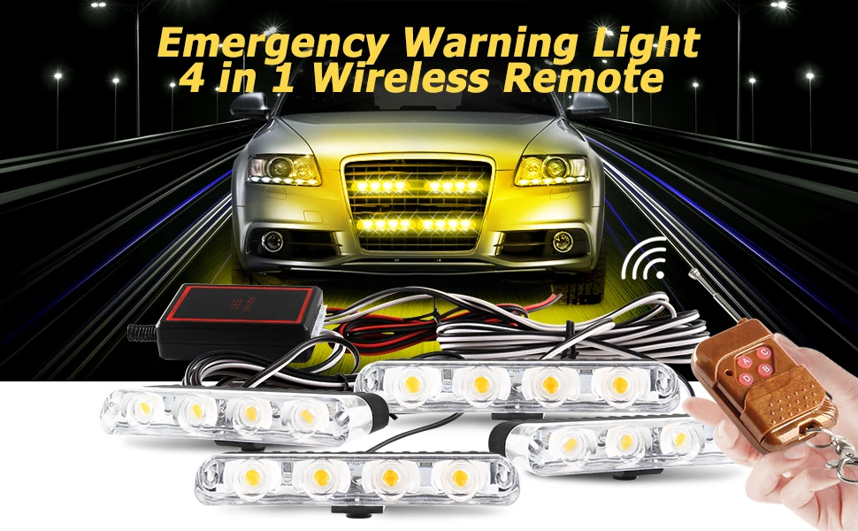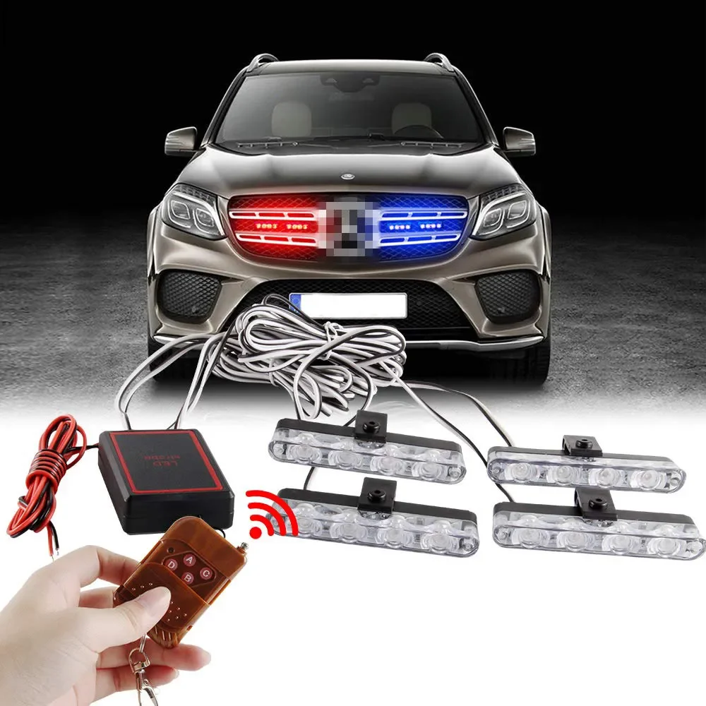 Comprar Luces estroboscópicas DE EMERGENCIA 4 en 1 para coches, camiones, furgonetas y SUV, luces de Policía de 12V con Control remoto inalámbrico, luz de rejilla Flash