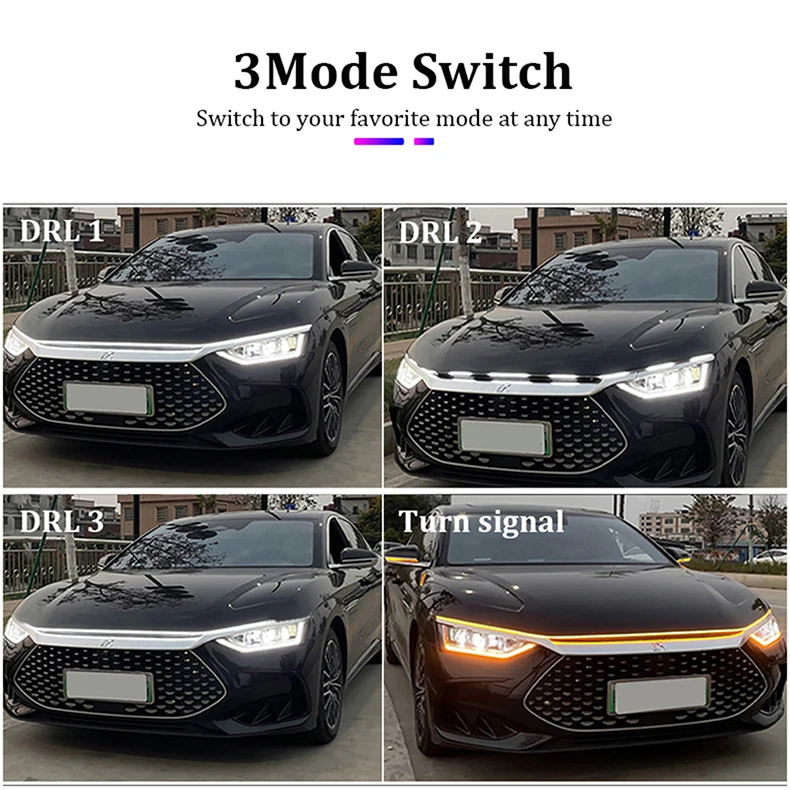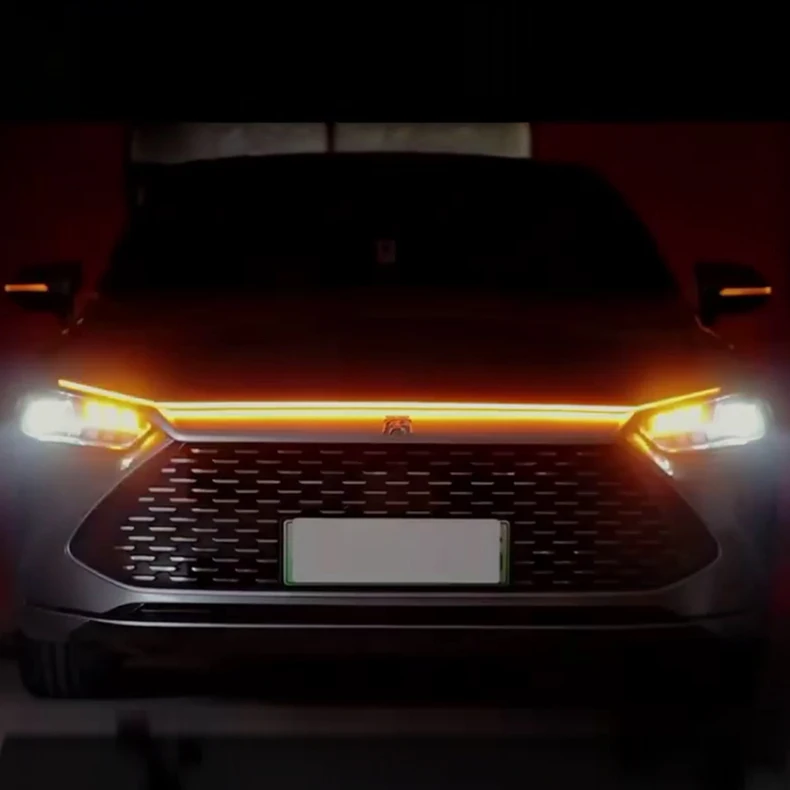 Comprar Luces LED de circulación diurna para capó de coche, iluminación dinámica de ventanas, blanco y amarillo, DRL, guía de capó de motor, 12V