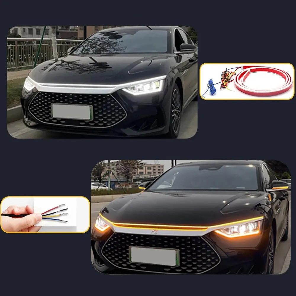Comprar Luces LED de circulación diurna para capó de coche, iluminación dinámica de ventanas, blanco y amarillo, DRL, guía de capó de motor, 12V