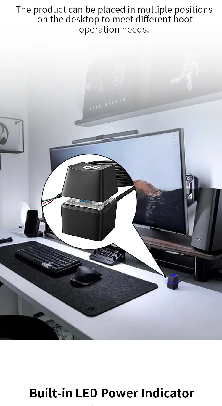 Luces LED coloridas de 1,65/5/10M, interruptor de escritorio para ordenador, placa base de PC, Cable de extensión de botón de encendido y apagado para el hogar y la Oficina