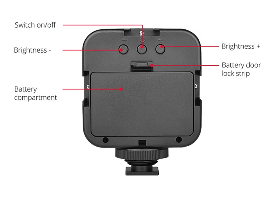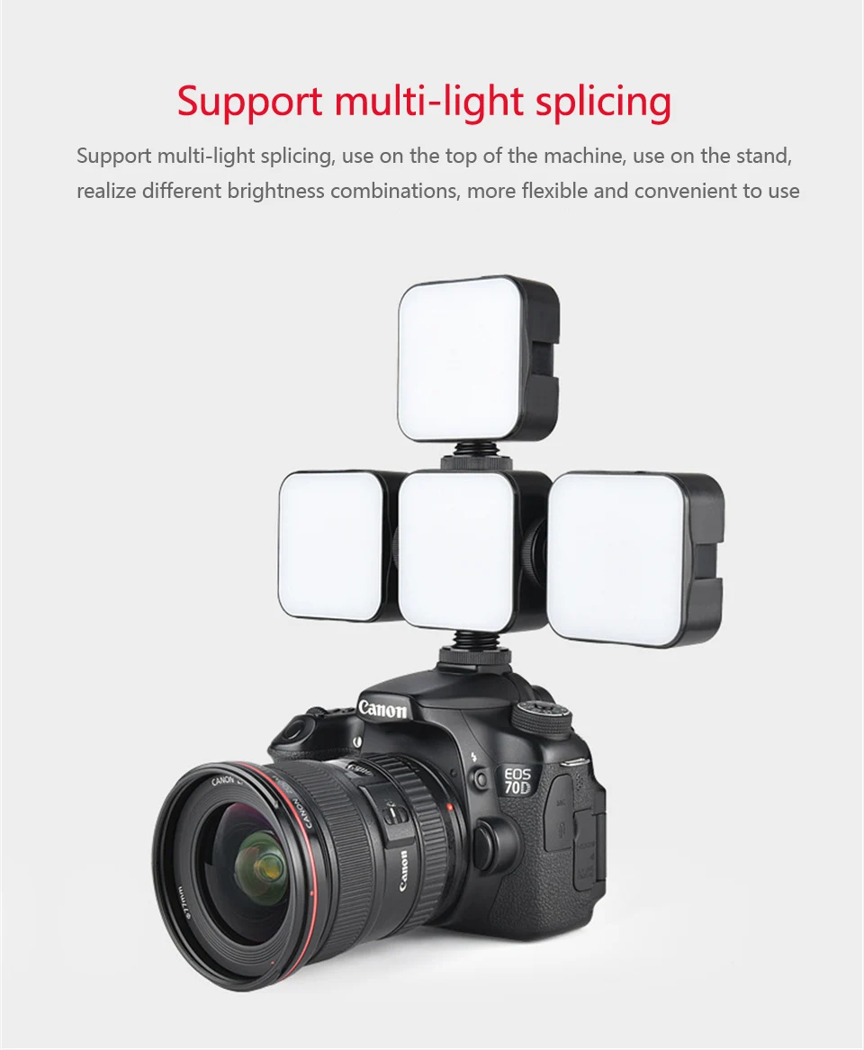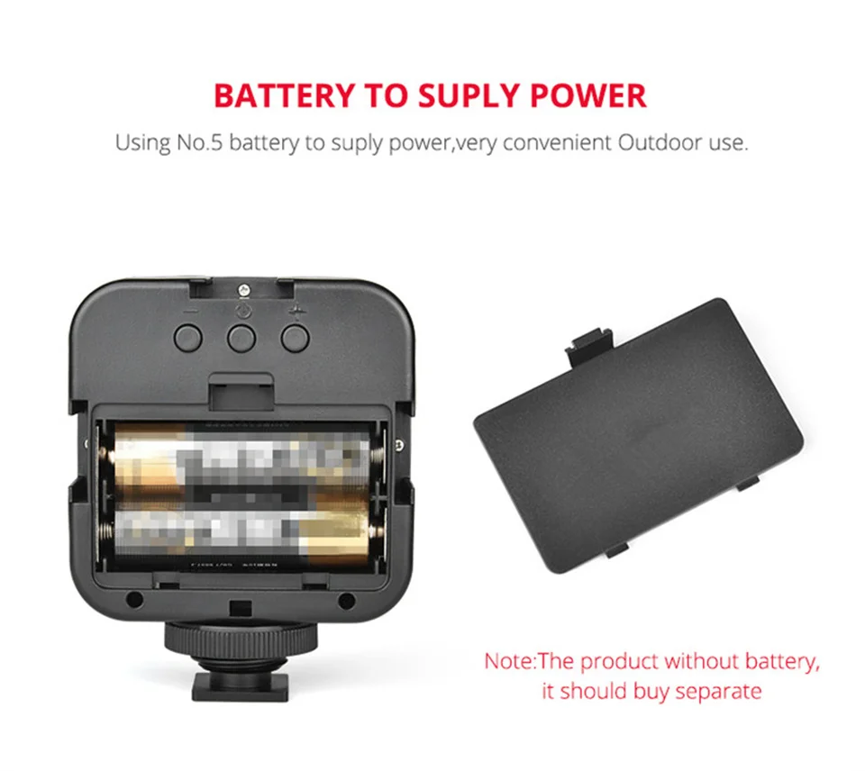 4.Equipada con un adaptador de montaje de zapata fría y un orificio para tornillo de 1/4 de pulgada, la luz LED se puede instalar en una cámara, trípode u otro equipo.