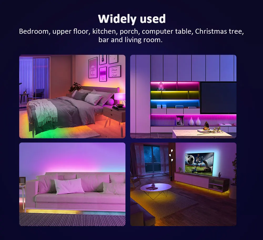 【Control de APP 】: la aplicación "Happy Lighting" le permite elegir colores, brillo ajustable y múltiples modos de iluminación para adaptarse al ambiente de la habitación. (distancia de cubierta: 15m)