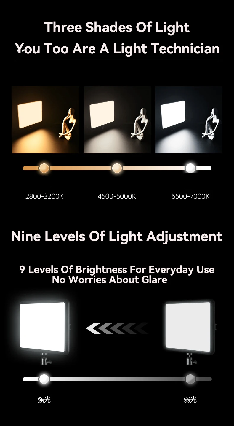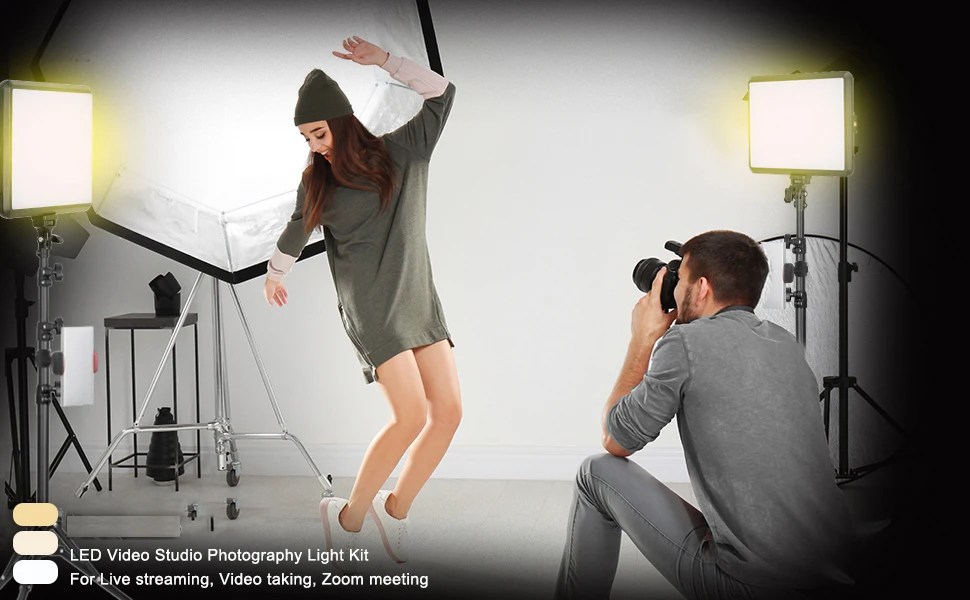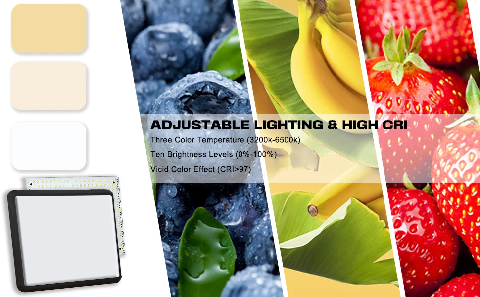 Proporciona 3 temperaturas de color para crear diversas atmósferas de iluminación; esta luz de estudio mejorada está equipada con 352 cuentas LED para hacer que la luz sea más amplia y evitar sombras innecesarias. Cuenta con un alto CRI de 97 + para una reproducción precisa del color. Ajuste el brillo en un rango de 10 a 100% con el botón arriba y abajo en el control remoto para adaptarse a diferentes circunstancias de fotografía, ofreciendo iluminación adicional para sus trabajos.