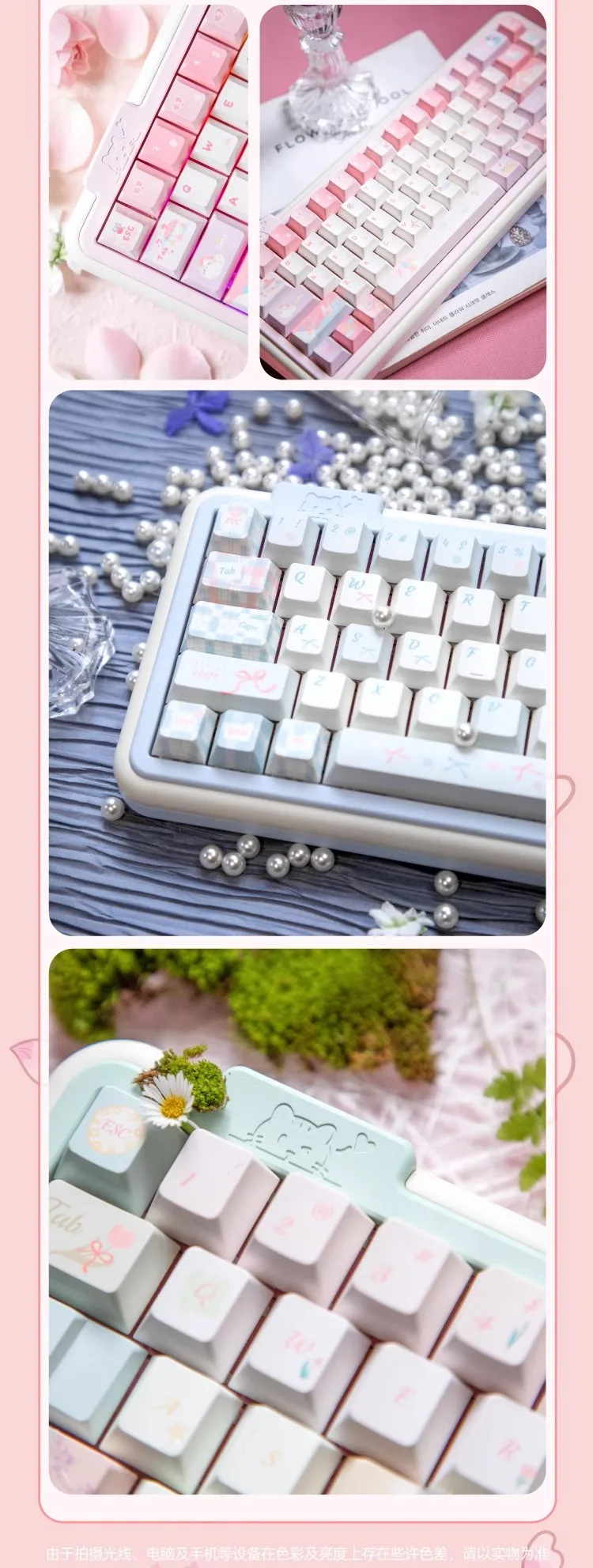 2.Aspecto excepcional: hay múltiples opciones de color, como el patrón de oso que explota con corazones de niña, así como diseños contrastantes.La capa exterior es redonda y tiene hermosas curvas, y la cubierta inferior y la cubierta superior combinan en colores contrastantes.Cada color de la tecla ha sido diseñado de forma independiente.