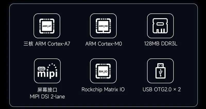 Triple-core Arm Cortex-A7 (1.2Ghz) + Arm Cortex-M0