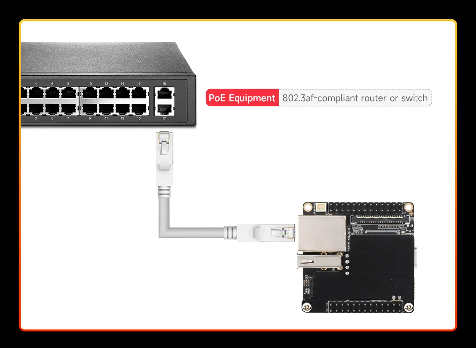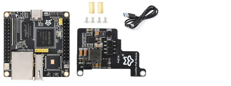 Proporciona conexión de red y fuente de alimentación para la placa Luckfox Nova en un solo cable Ethernet