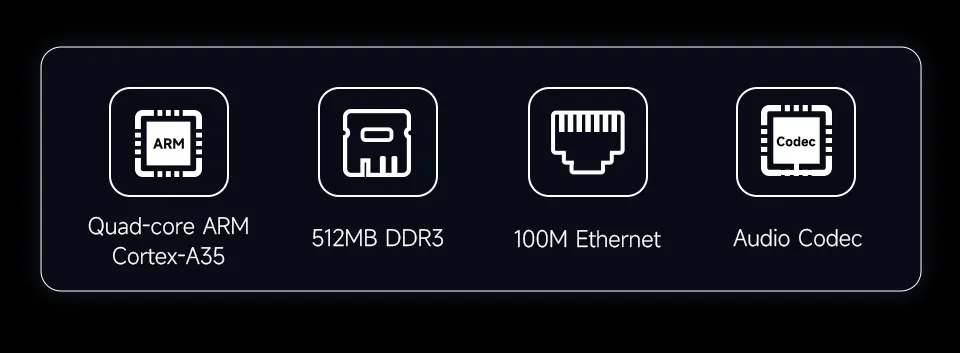 ARM quad-core Cortex-A35 de 64 bits a 1,3 GHz, con módulos integrados de codec de audio y detección de actividad de voz (VAD) de alto rendimiento