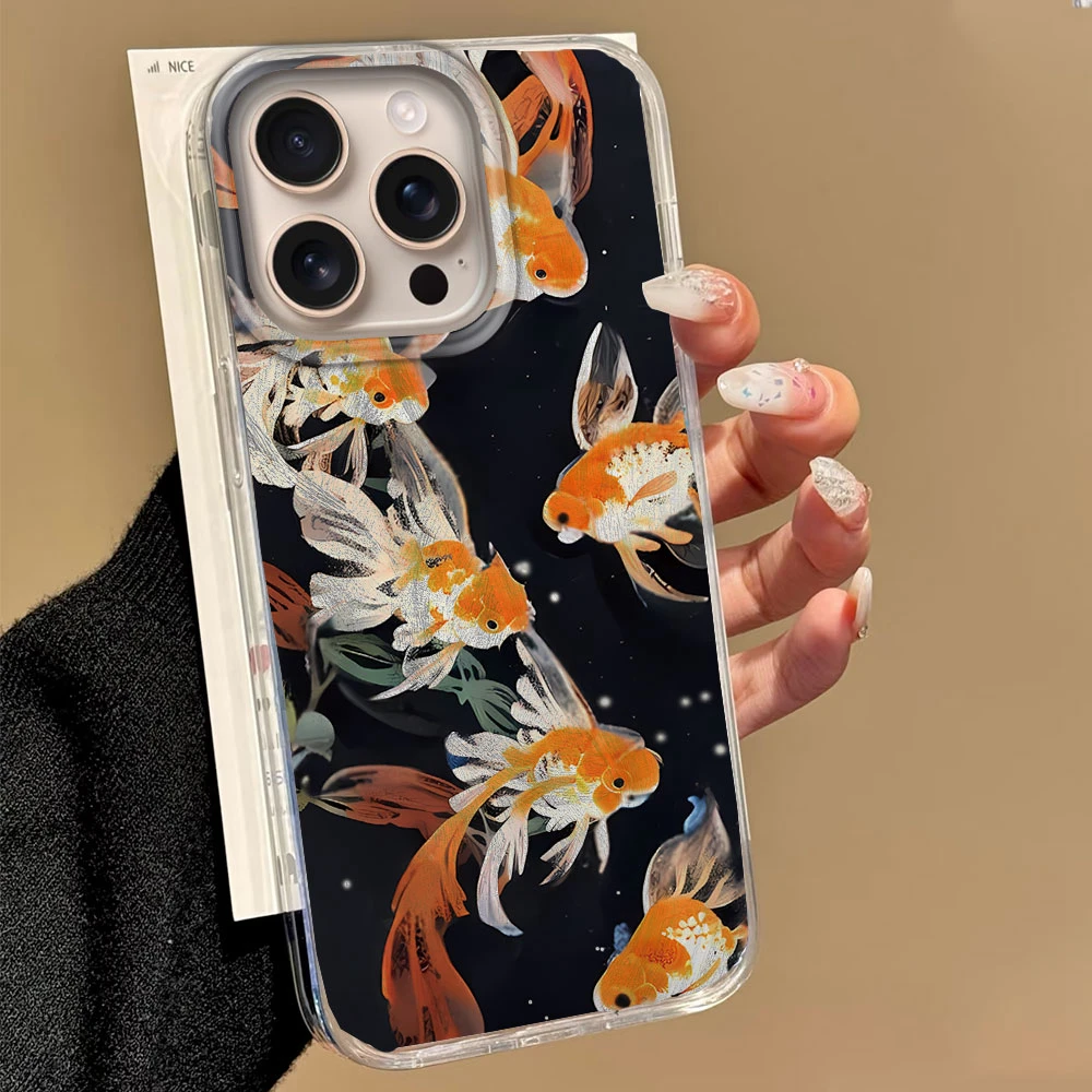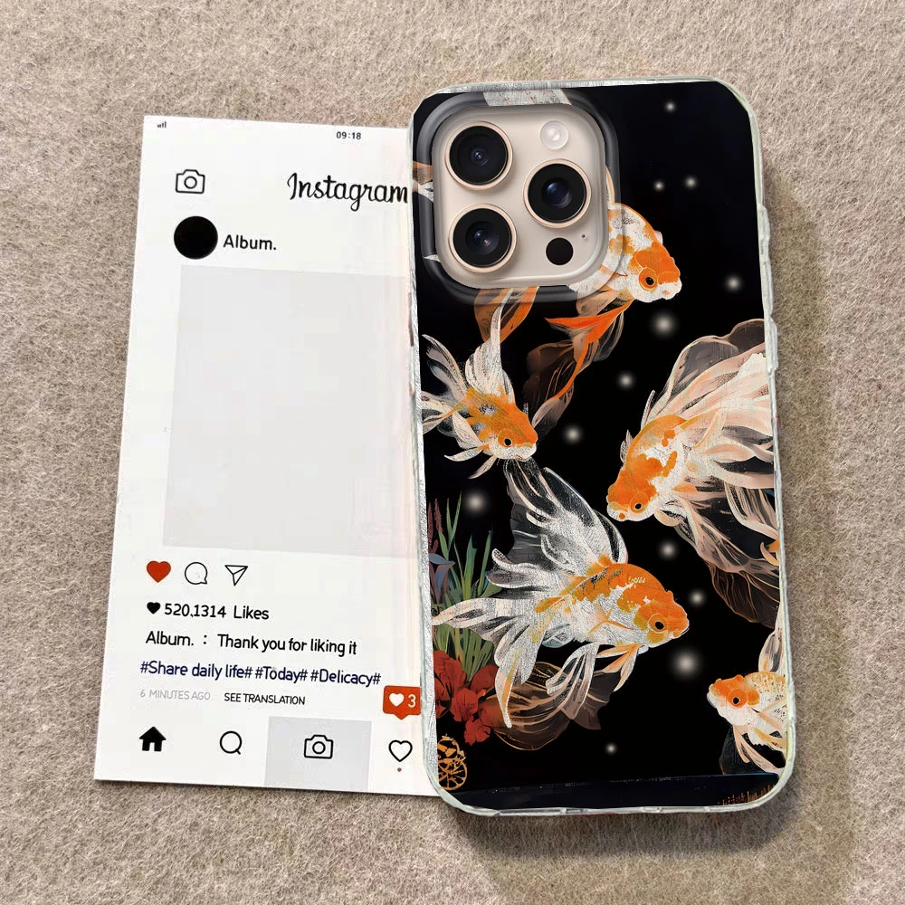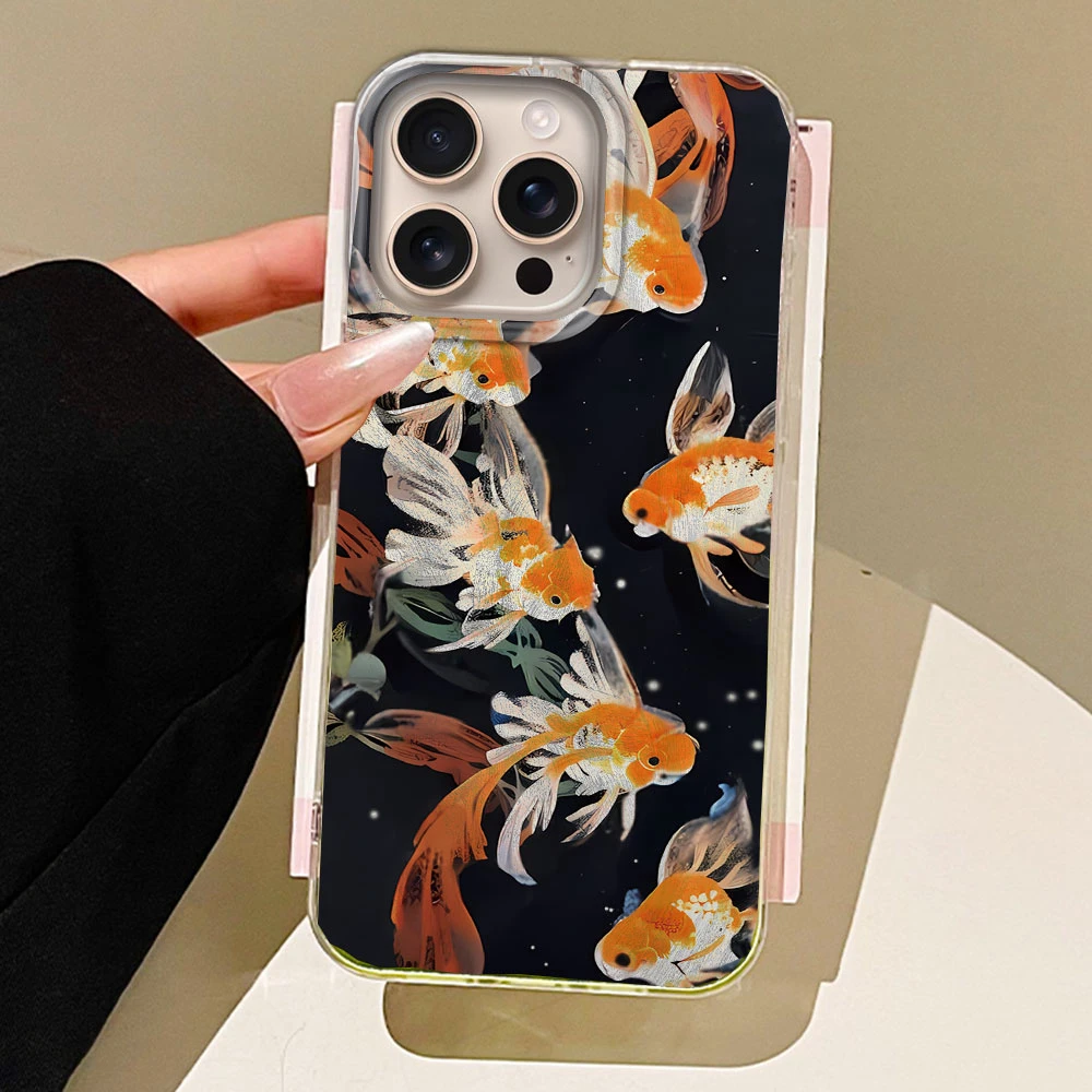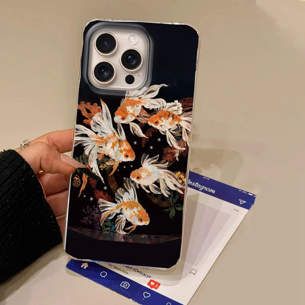 Comprar Luckly Koi Goldfish-funda de teléfono con textura de plumas de carpa roja, funda trasera para iphone 16 15 14 7 8 Plus 13 11 12 Pro Max X XS XR SE 2022