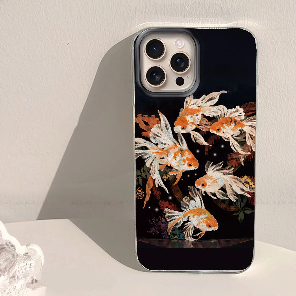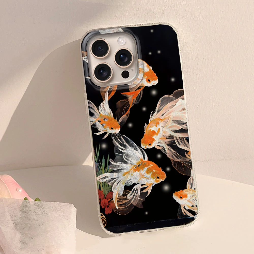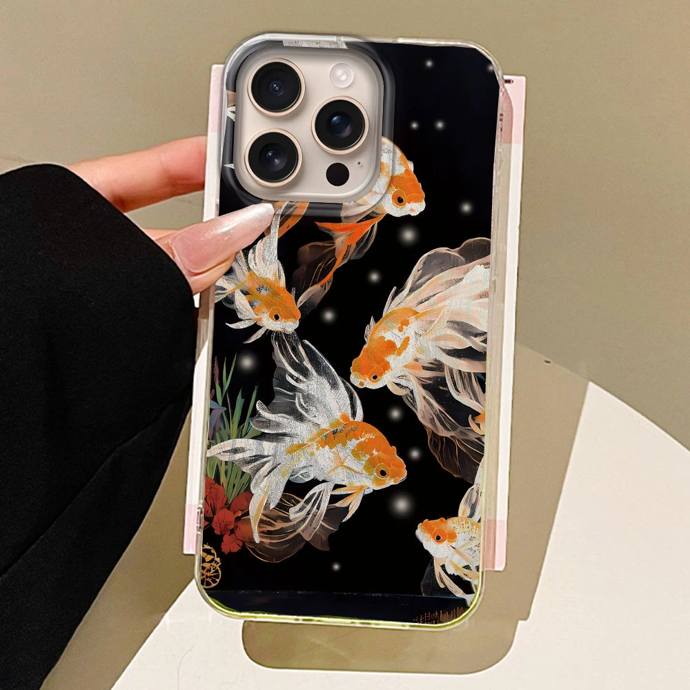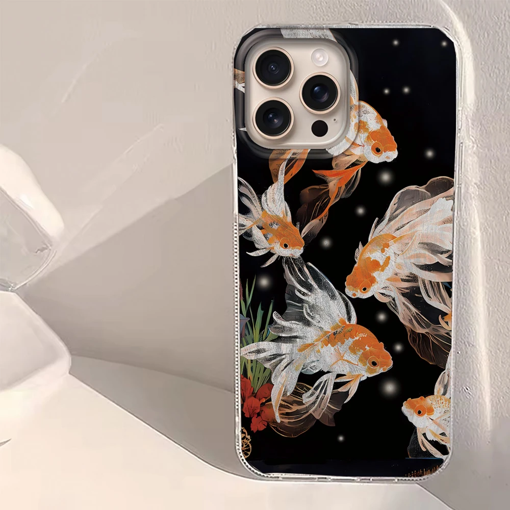 Comprar Luckly Koi Goldfish-funda de teléfono con textura de plumas de carpa roja, funda trasera para iphone 16 15 14 7 8 Plus 13 11 12 Pro Max X XS XR SE 2022