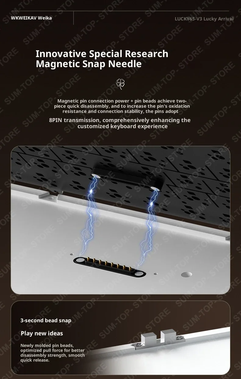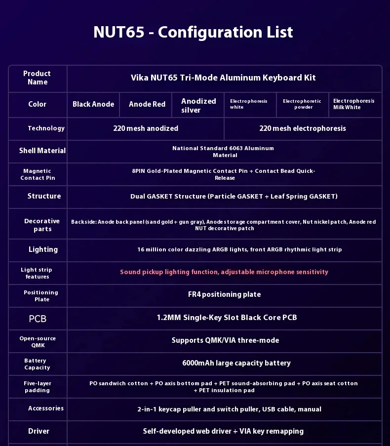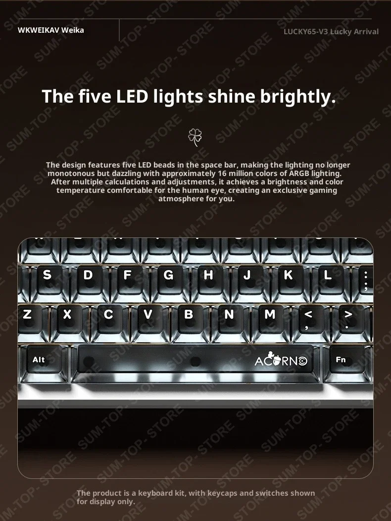 Querido amigo Estimado amigo, este enlace incluye NUT65 y Lucky65 V3.Compre según sus necesidades. Los siguientes detalles introduzcan los productos NUT65 y Lucky65 V3 respectivamente. Gracias por su apoyo y espera.La versión Lucky65 V3 ha comenzado a vender, Ha actualizado su interfaz de alimentación y utiliza 8 pines táctiles magnéticos para un fácil desmontaje. y montaje del teclado.Al mismo tiempo, la apariencia también ha cambiado para verse mejor, como NUT65, que está muy de moda.Tiene el mismo rendimiento que NUT65, pero a un precio más barato.Si también te gusta, cómpralo ahora.Tiene 6 colores para elegir: negro, plateado, rojo, blanco leche, rosa, blanco.