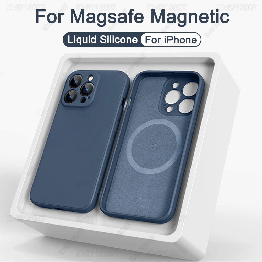 Comprar Lujo de silicona líquida caso magnético para el iPhone 11 13 12 mini 14 15 16 pro Max Plus magsafe Fundas móviles carga inalámbrica cubierta
