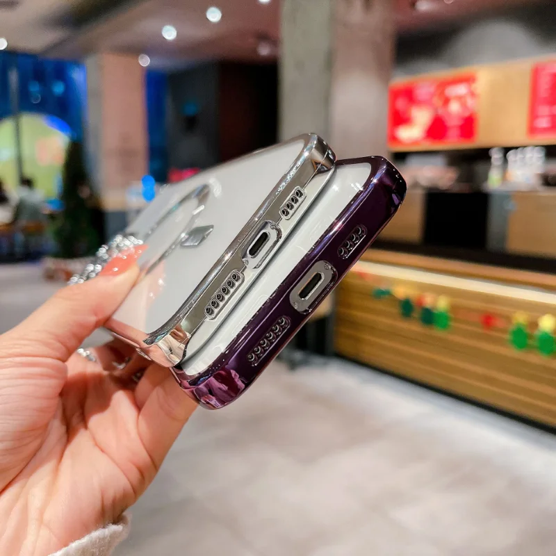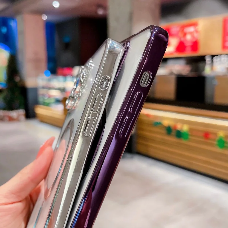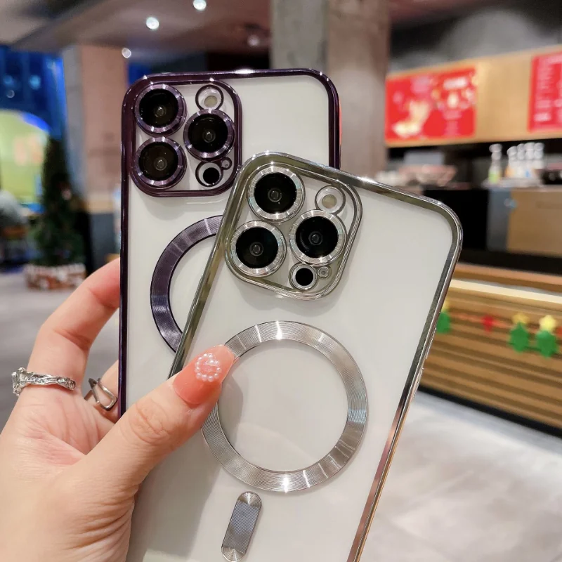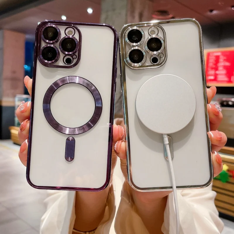 Comprar Lujosa funda magnética para iPhone 14, 13, 12, 11 Pro Max, 14Plus, chapada en silicona suave transparente con logotipo, cubierta de carga inalámbrica