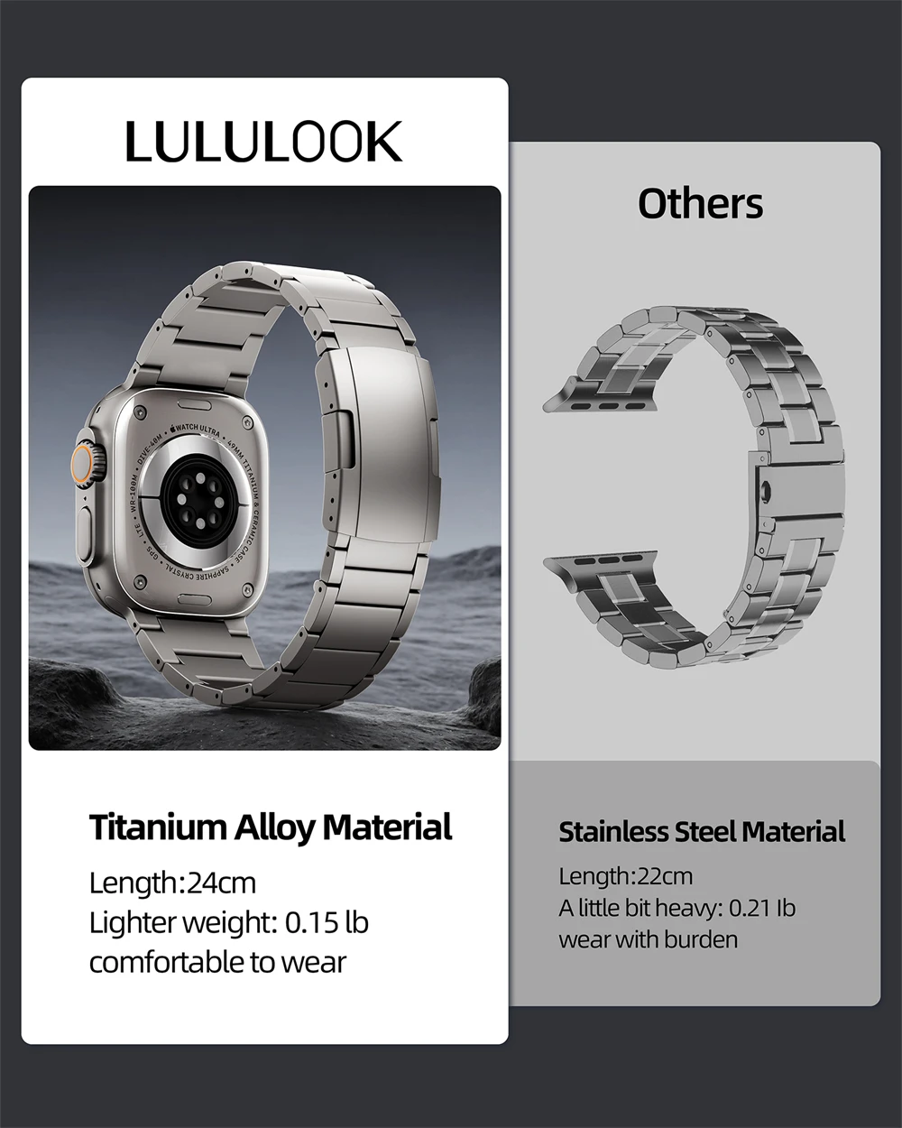 Eleva tu estilo: la elegante y moderna correa de titanio LULULOOK para Apple Watch Ultra mejora el aspecto general de tu reloj.Diseñada pensando en la comodidad, esta correa de reloj cuenta con un cierre seguro que mantiene su reloj firmemente en su lugar durante todo el día.